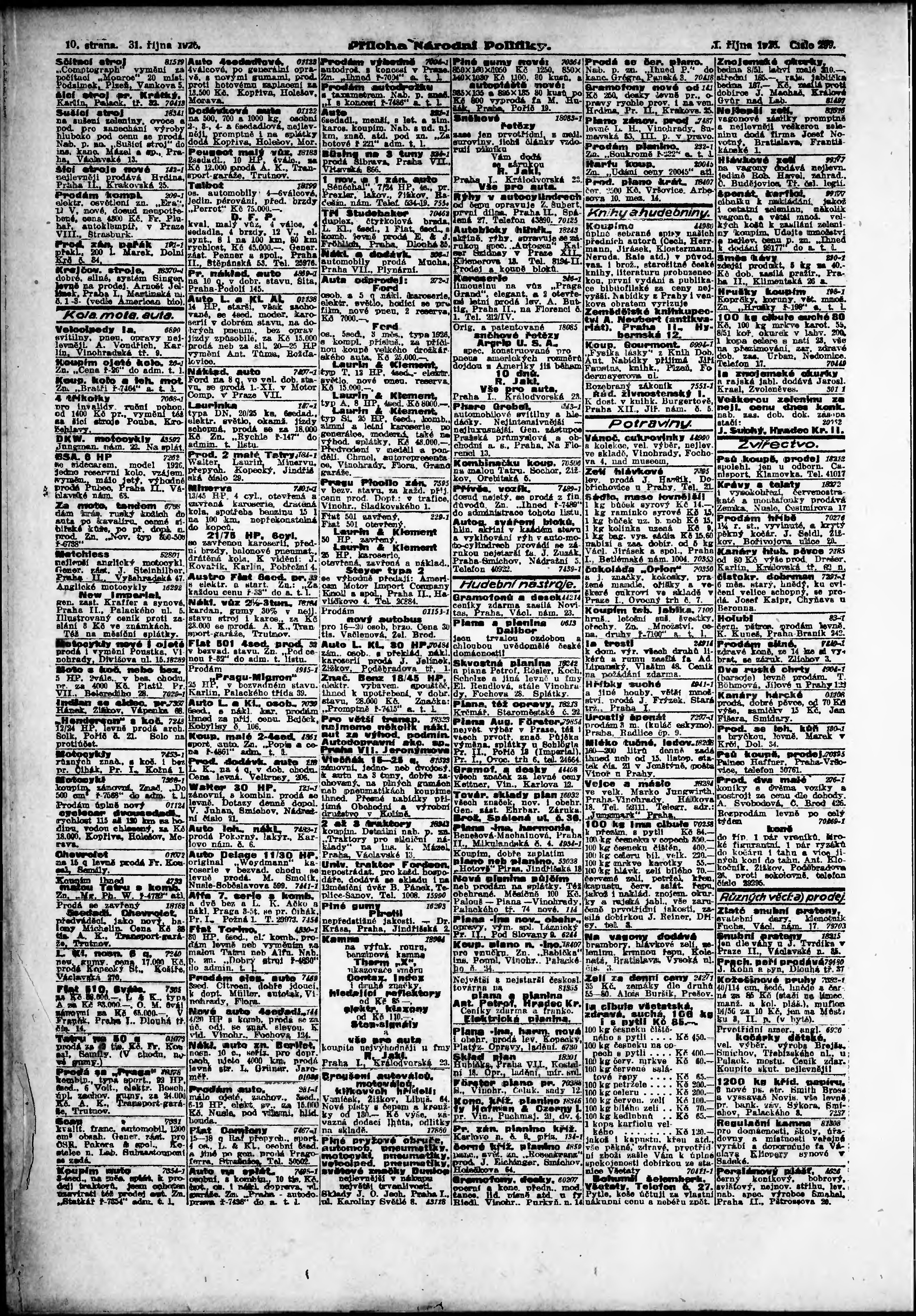 * Datum vydání výtisku: 31.10.1926 Číslo výtisku: 299 Typ výtisku: příloha Poznámky k výtisku: 1. příloha;