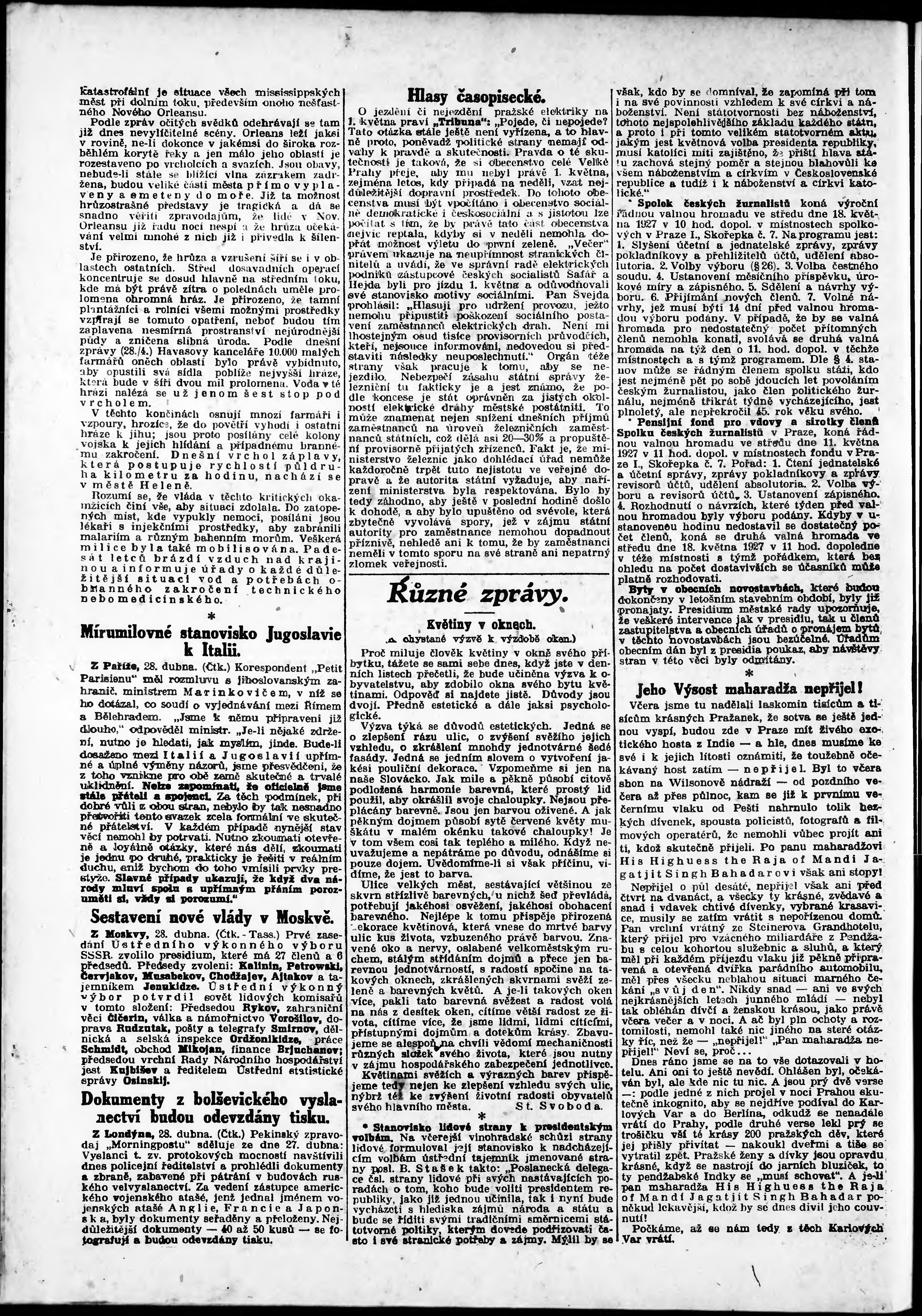 * Datum vydání výtisku: 28.4.1927 Číslo výtisku: 116 Poznámky k výtisku: odpolední vydání;