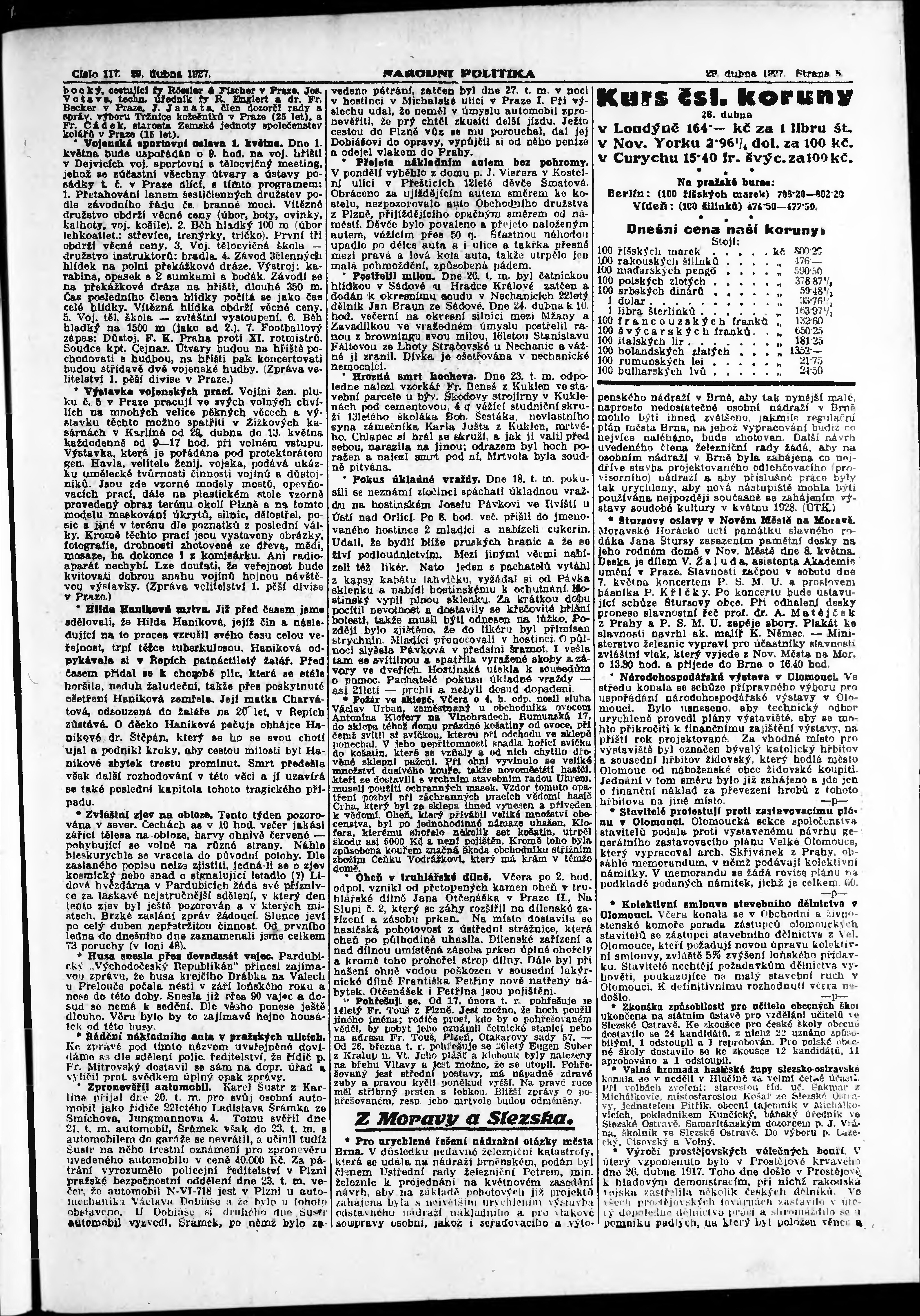 ranní vydání; vydání pro Prahu;