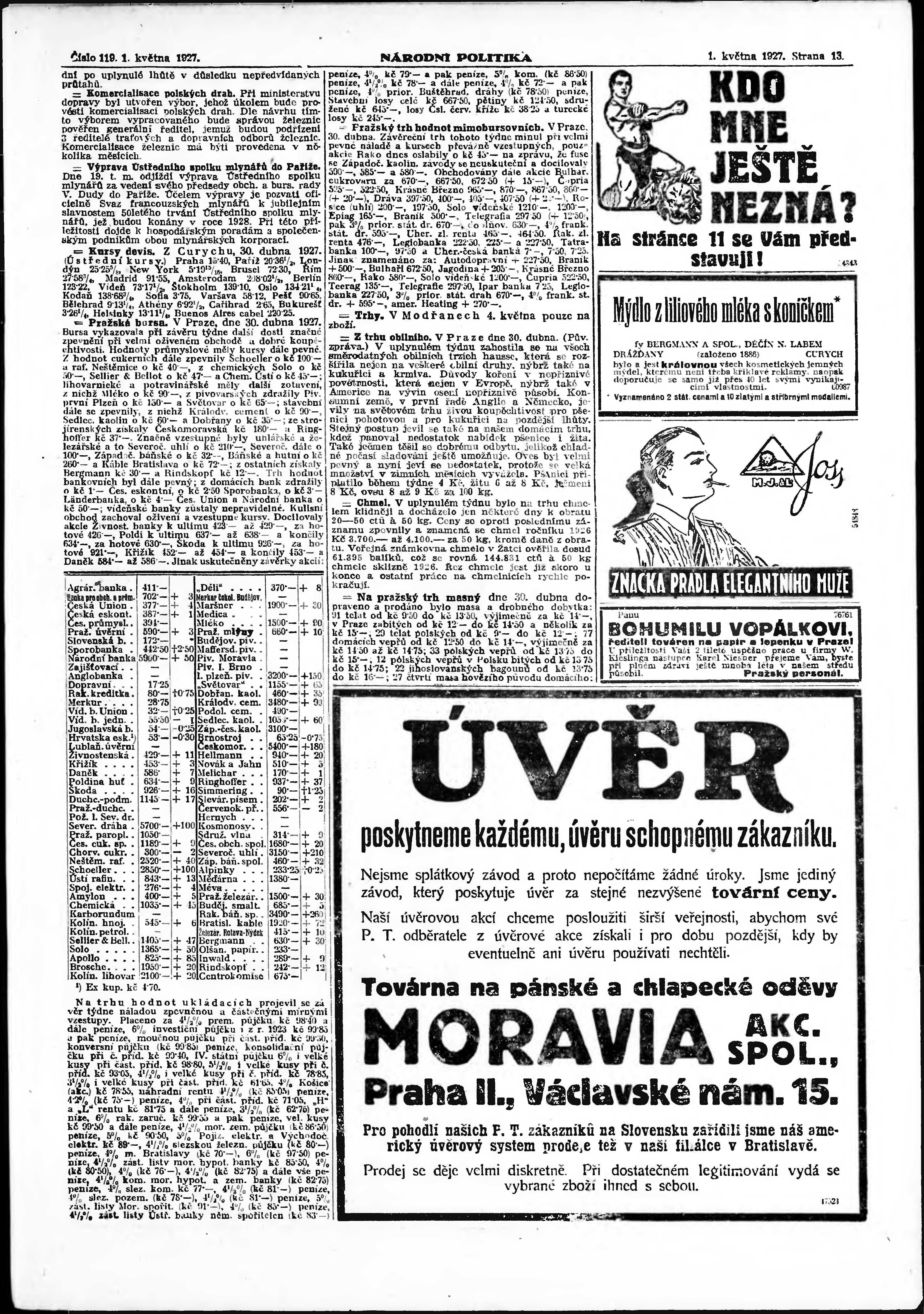 * Datum vydání výtisku: 1.5.1927 Číslo výtisku: 119 Poznámky k výtisku: ranní vydání;