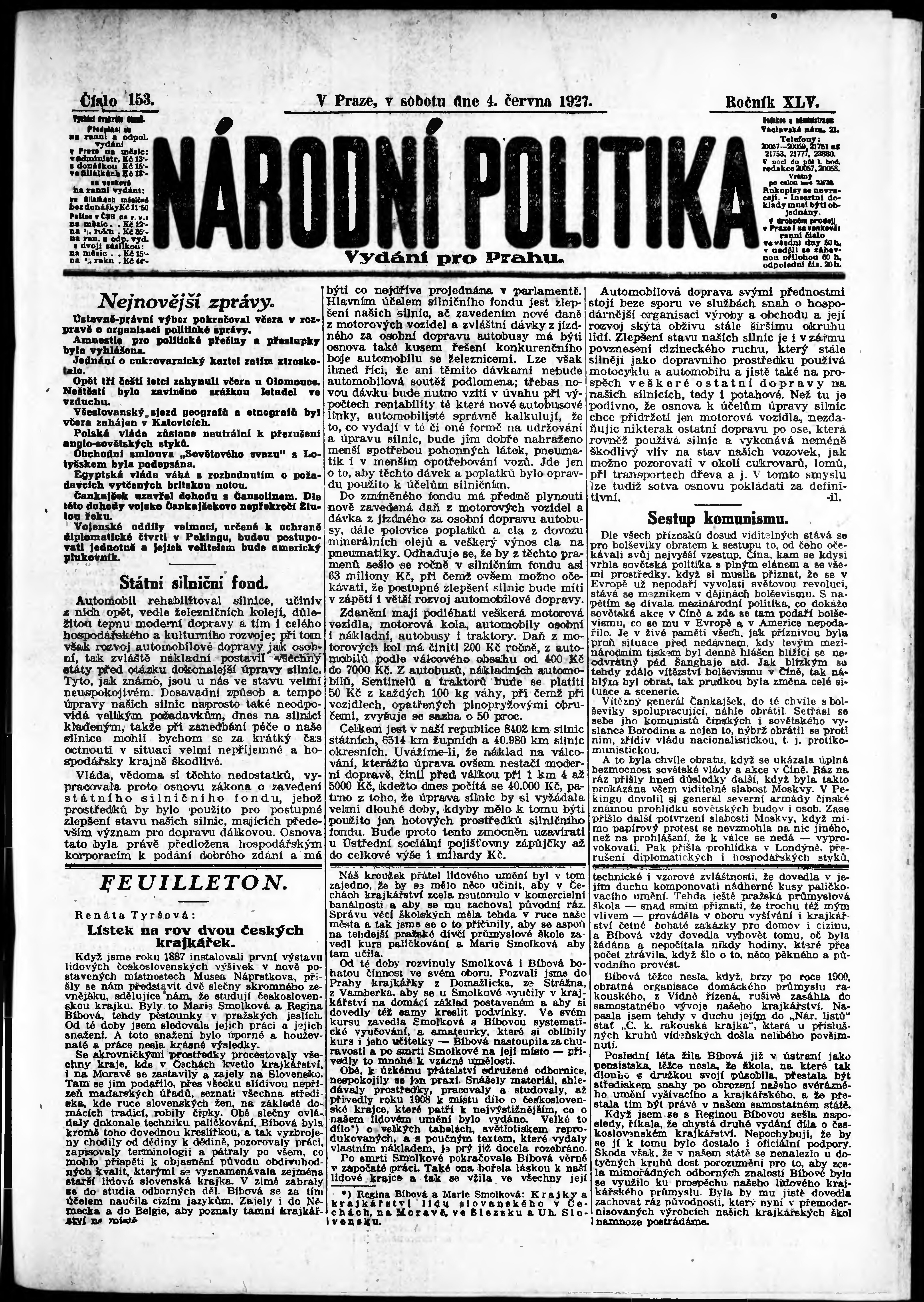 ranní vydání; vydání pro Prahu;