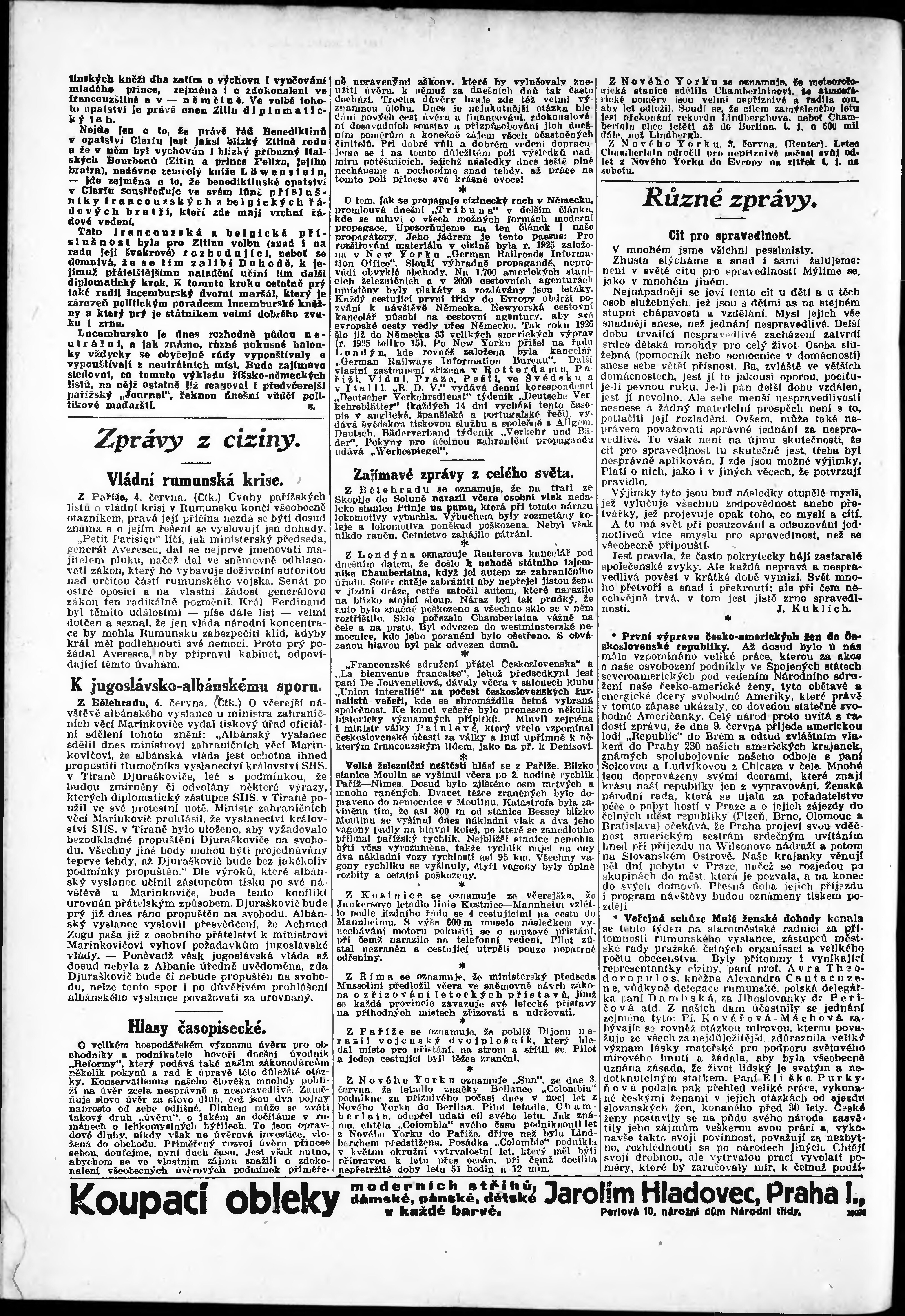 * Datum vydání výtisku: 4.6.1927 Číslo výtisku: 153 Poznámky k výtisku: odpolední vydání;