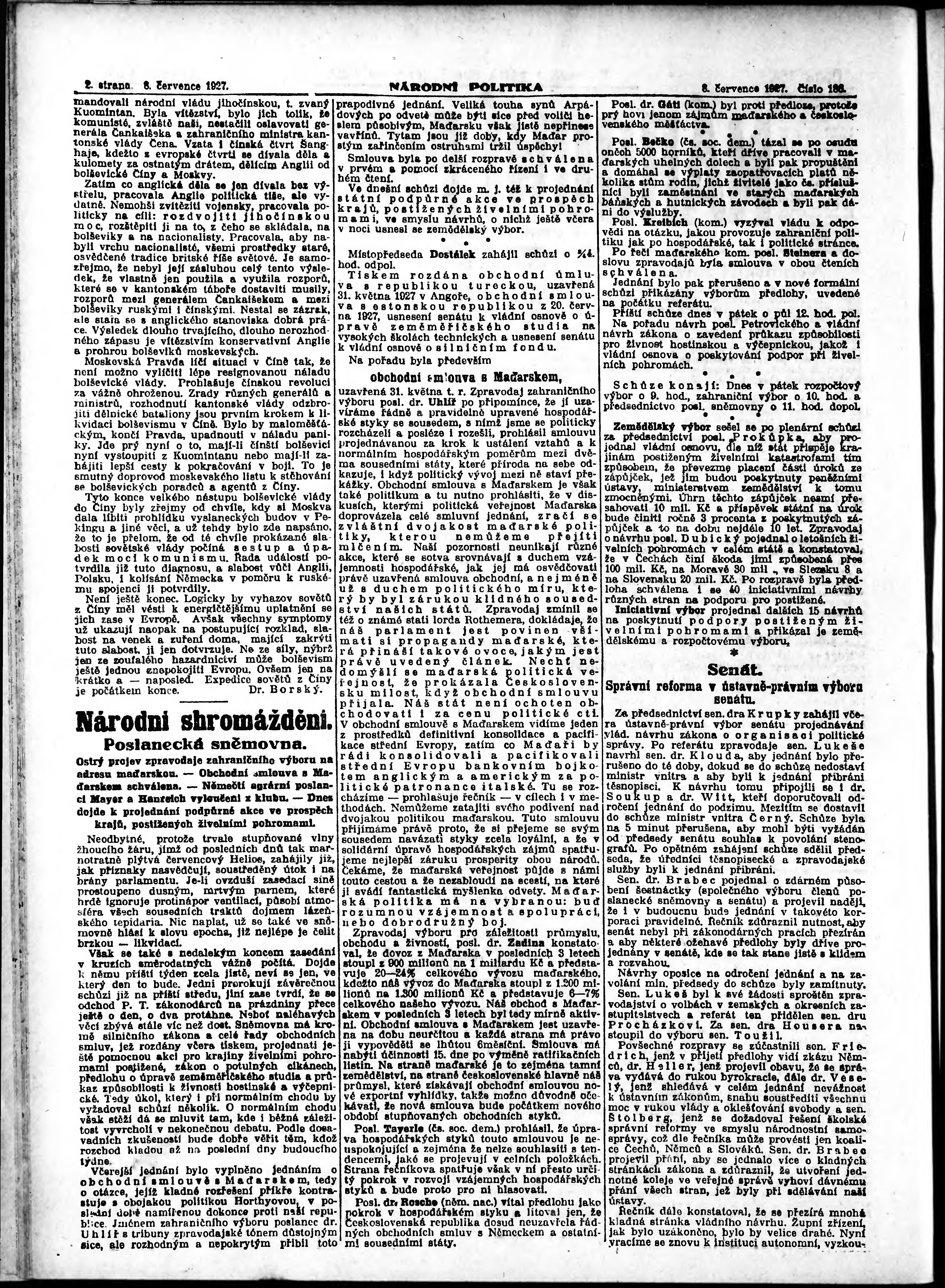 * Datum vydání výtisku: 8.7.1927 Číslo výtisku: 186 Poznámky k výtisku: ranní vydání; vydání pro Prahu;