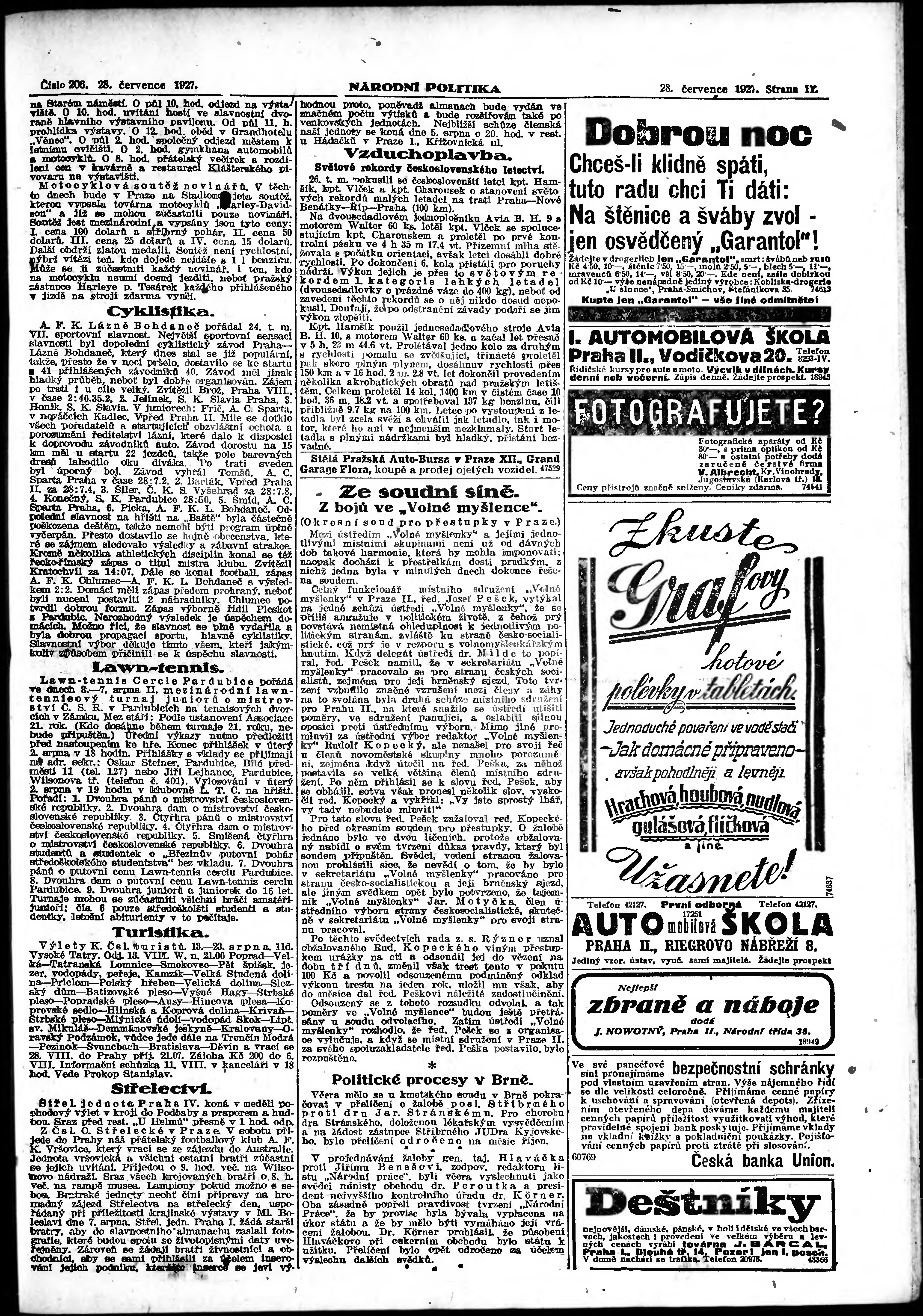 * Datum vydání výtisku: 28.7.1927 Číslo výtisku: 206 Poznámky k výtisku: ranní vydání; vydání pro Prahu;