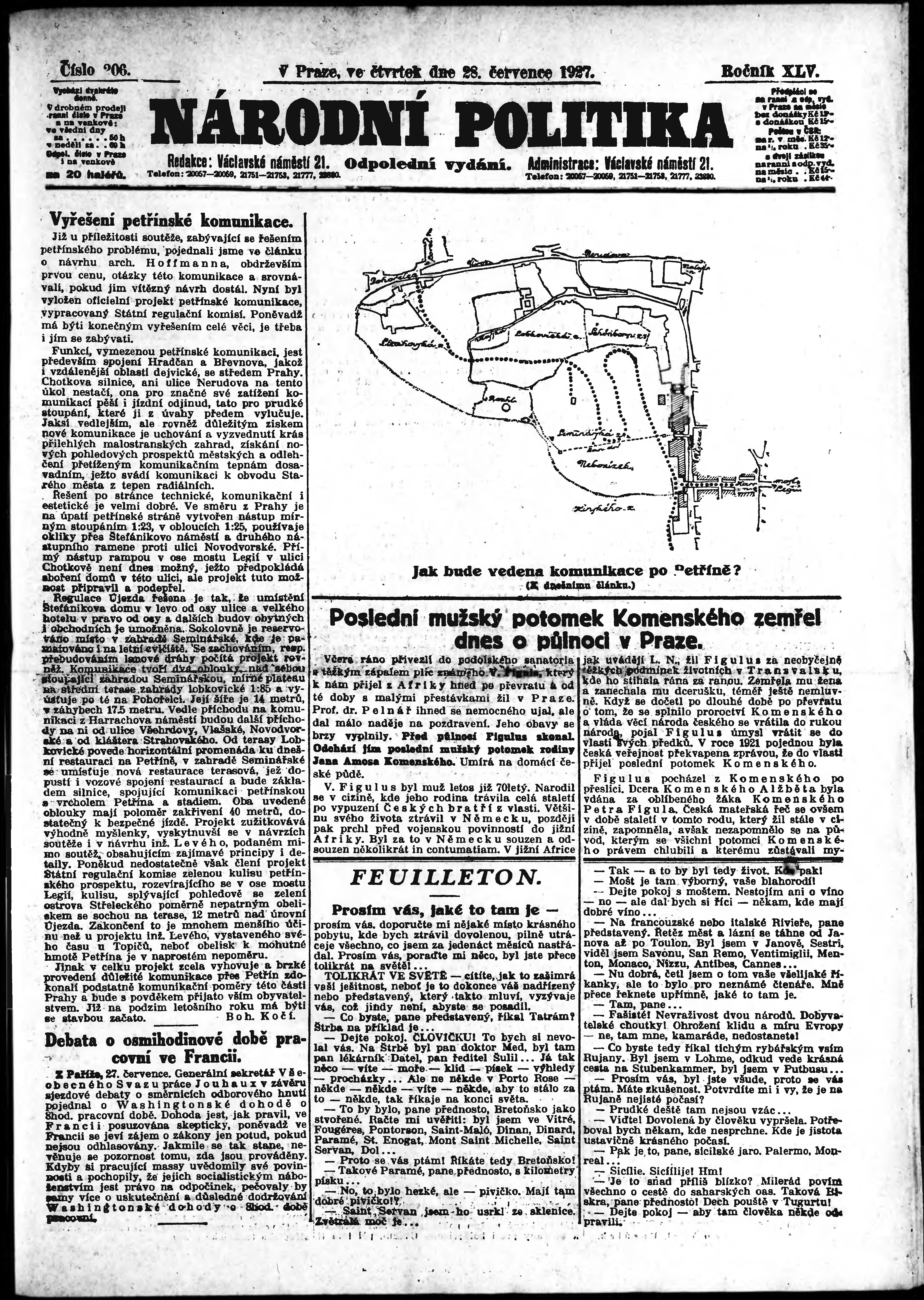 * Datum vydání výtisku: 28.7.1927 Číslo výtisku: 206 Poznámky k výtisku: odpolední vydání;