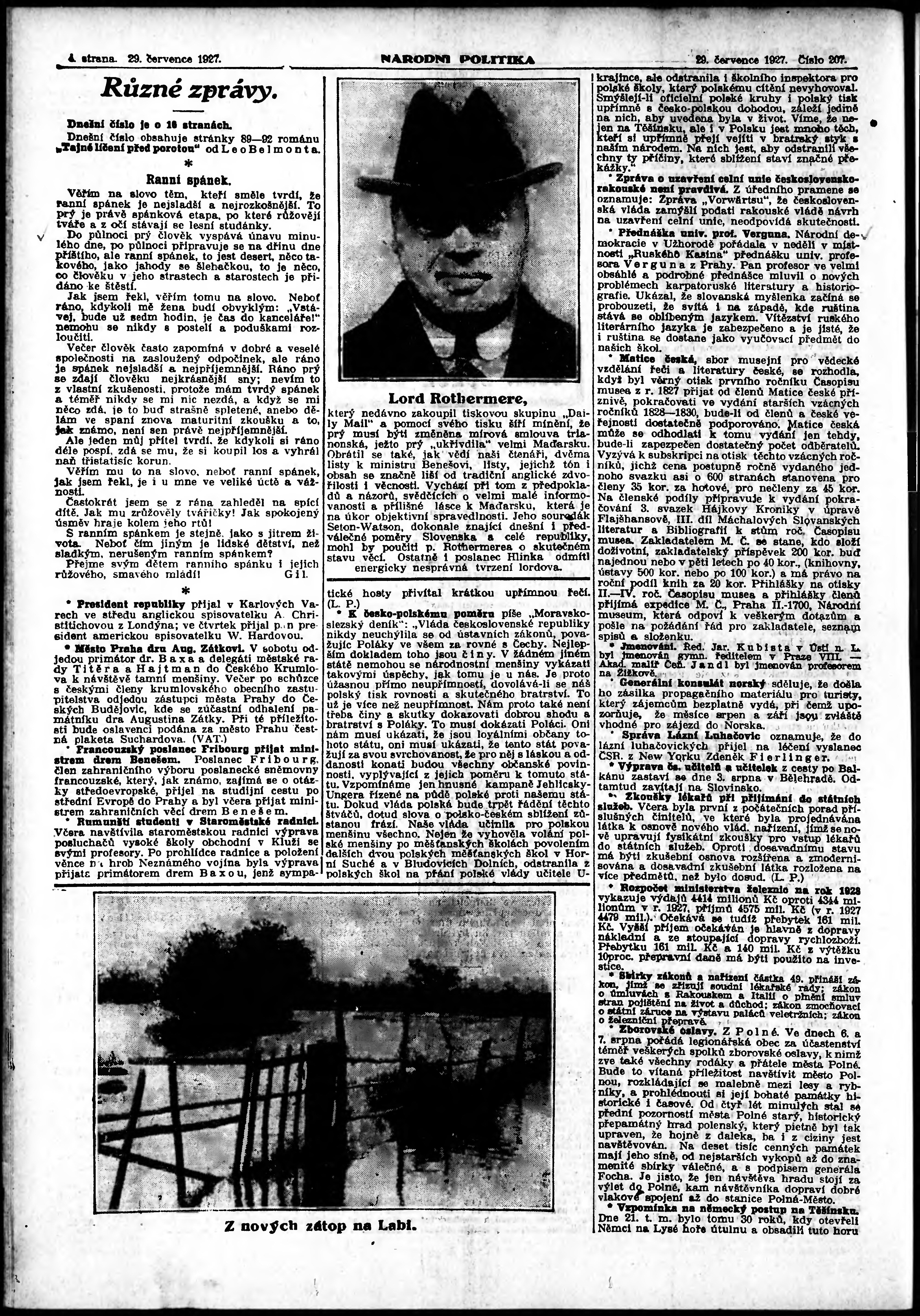 * Datum vydání výtisku: 29.7.1927 Číslo výtisku: 207 Poznámky k výtisku: ranní vydání; vydání pro Prahu;