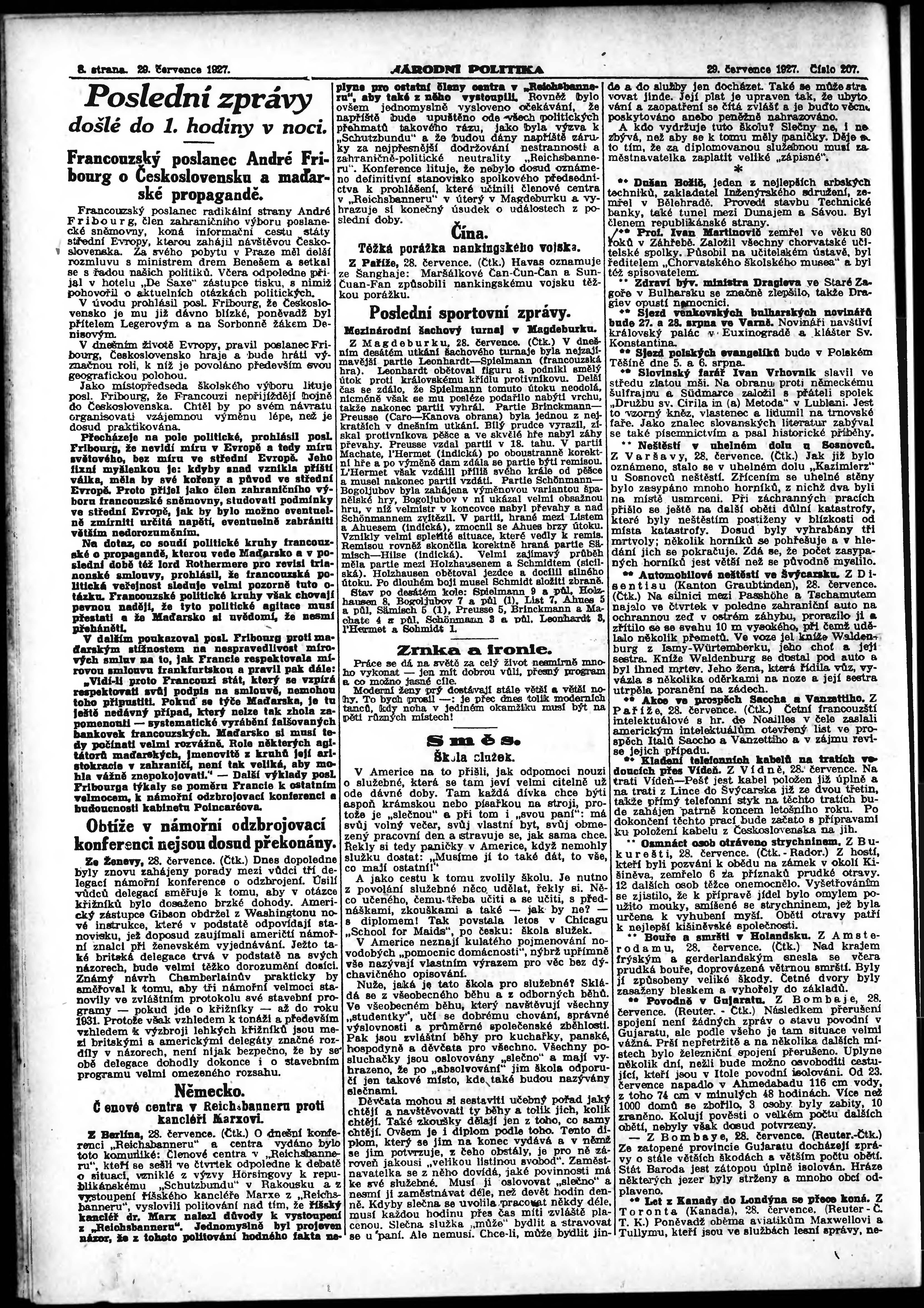 ranní vydání; vydání pro Prahu;