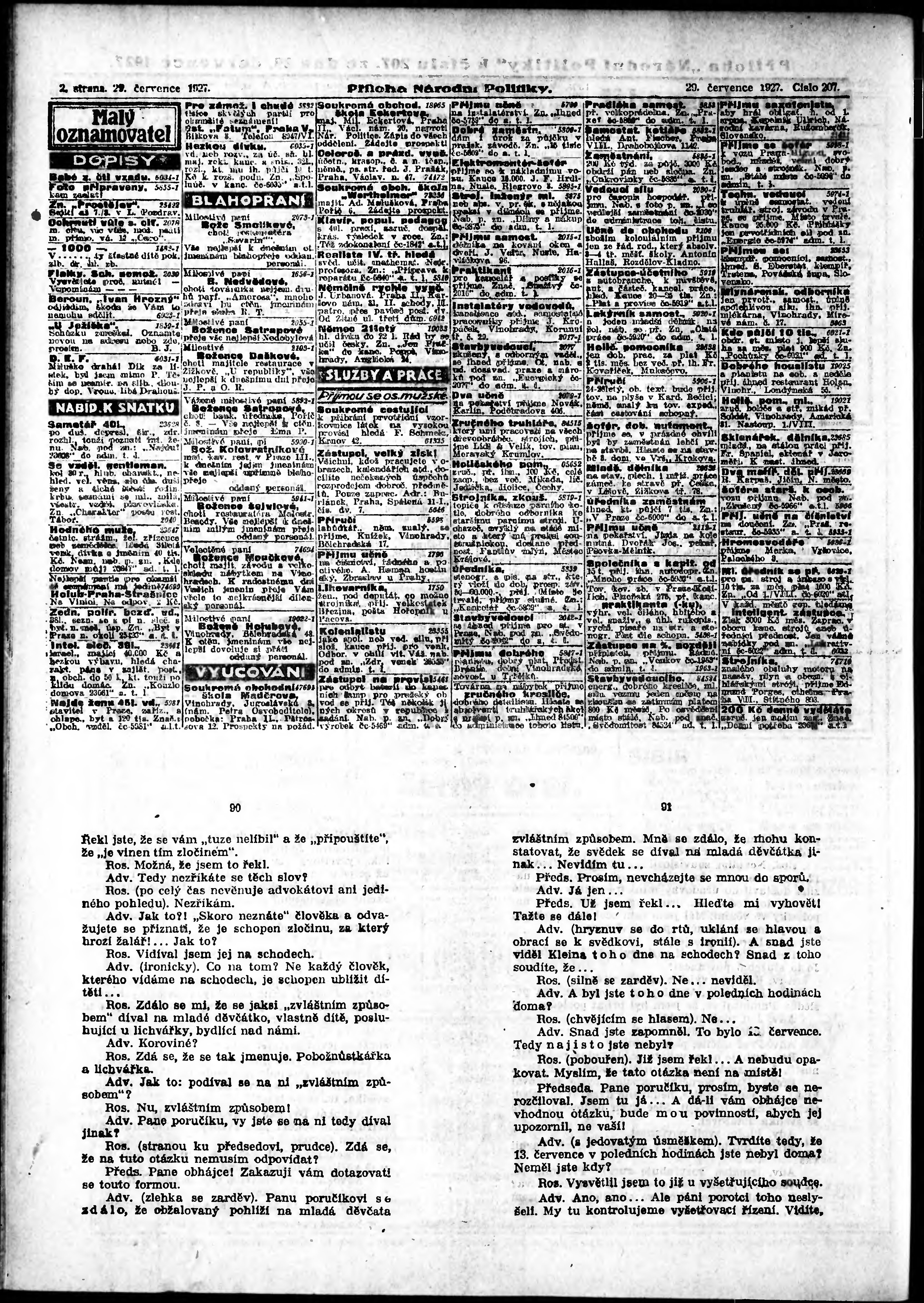 * Datum vydání výtisku: 29.7.1927 Číslo výtisku: 207 Typ výtisku: příloha