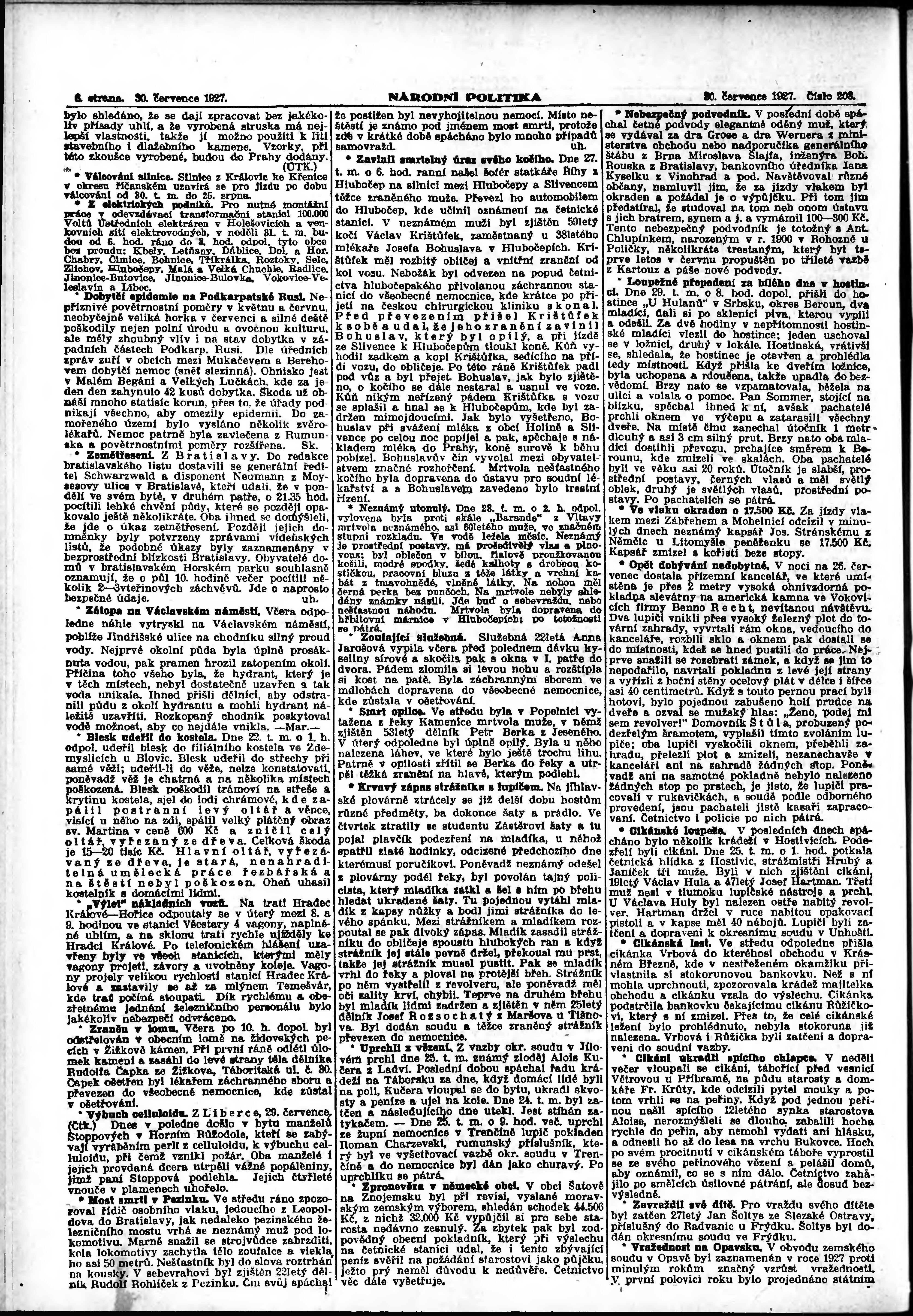 * Datum vydání výtisku: 30.7.1927 Číslo výtisku: 208 Poznámky k výtisku: ranní vydání; vydání pro Prahu;