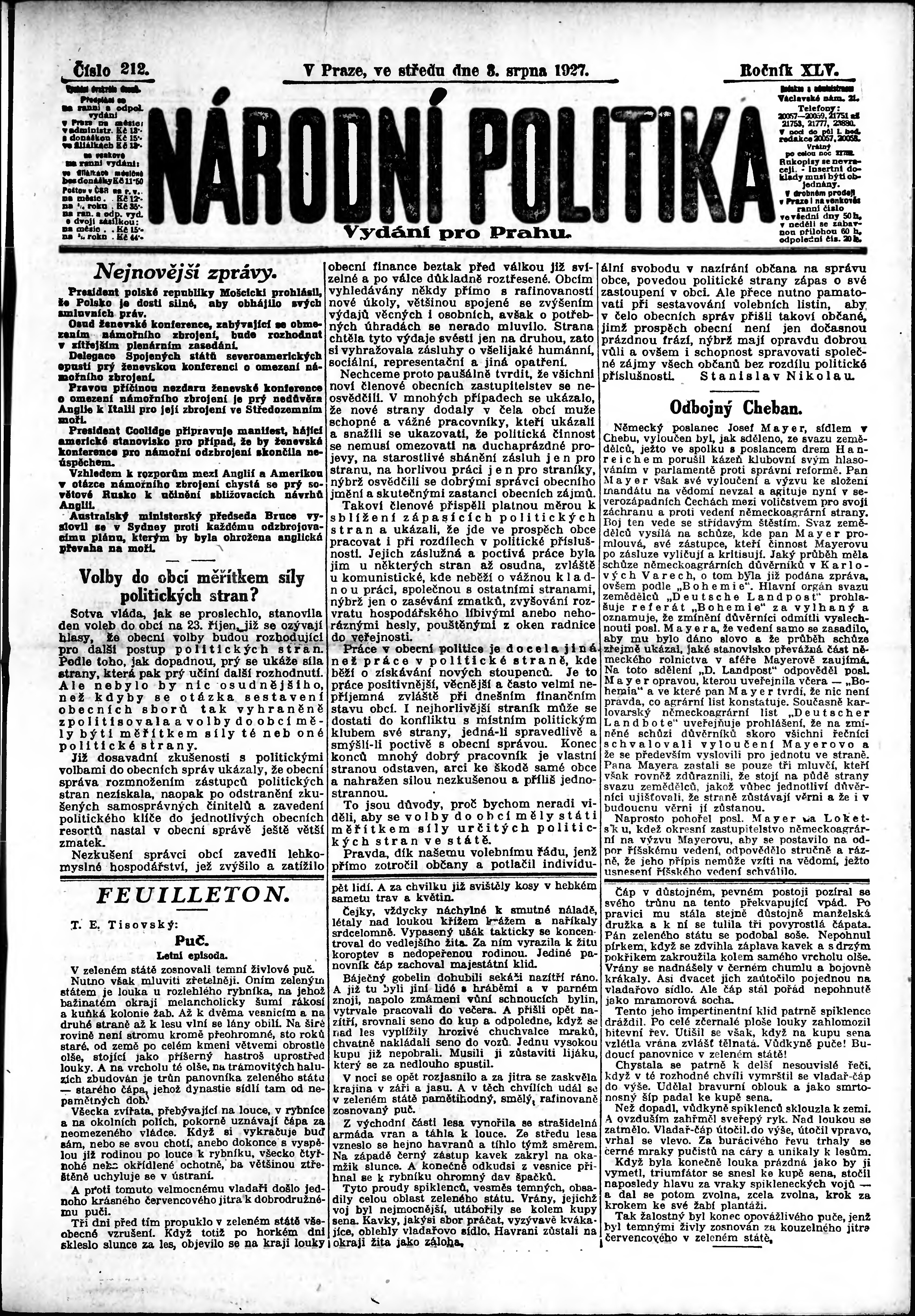 ranní vydání; vydání pro Prahu;
