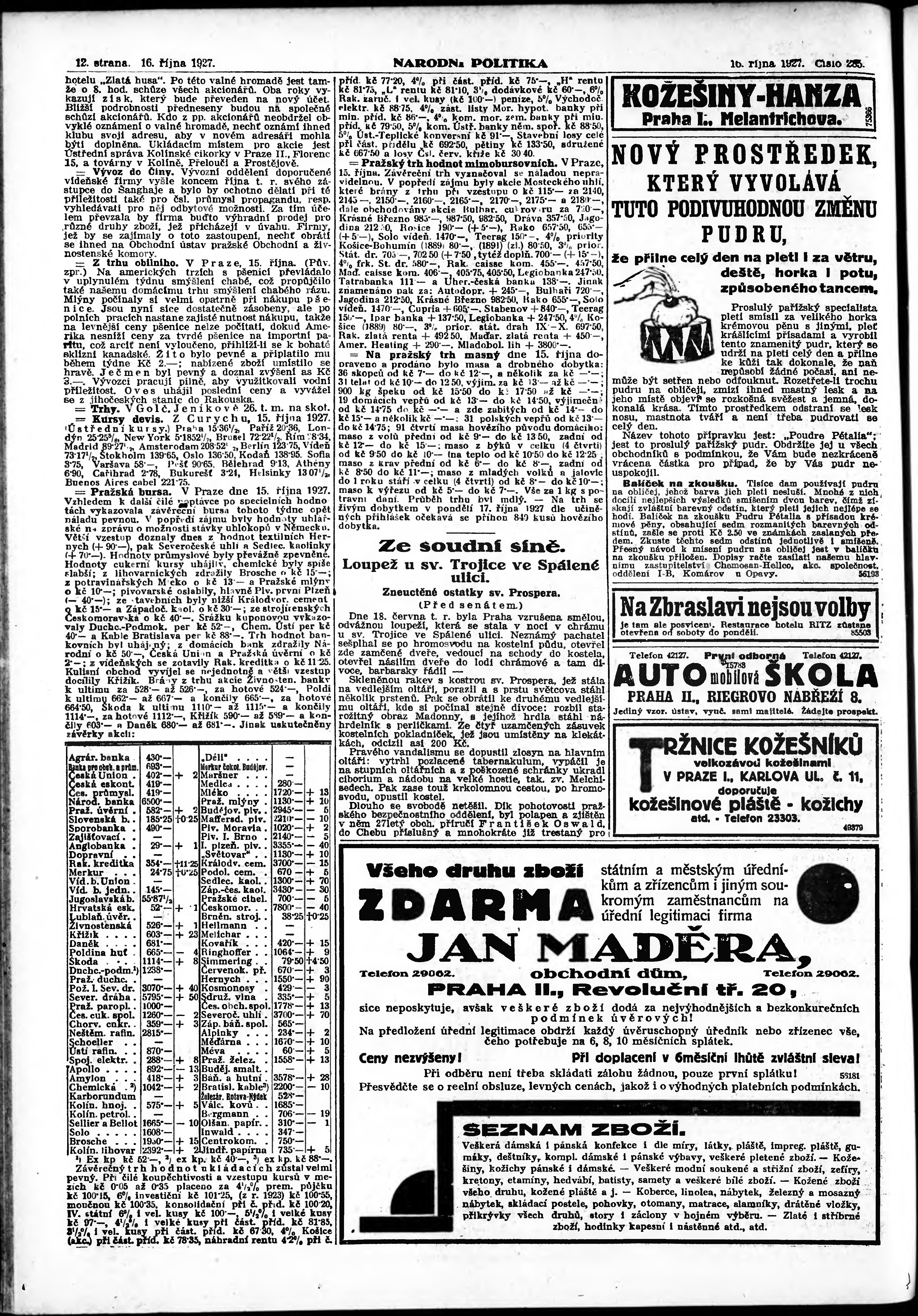 * Datum vydání výtisku: 16.10.1927 Číslo výtisku: 285 Poznámky k výtisku: ranní vydání;