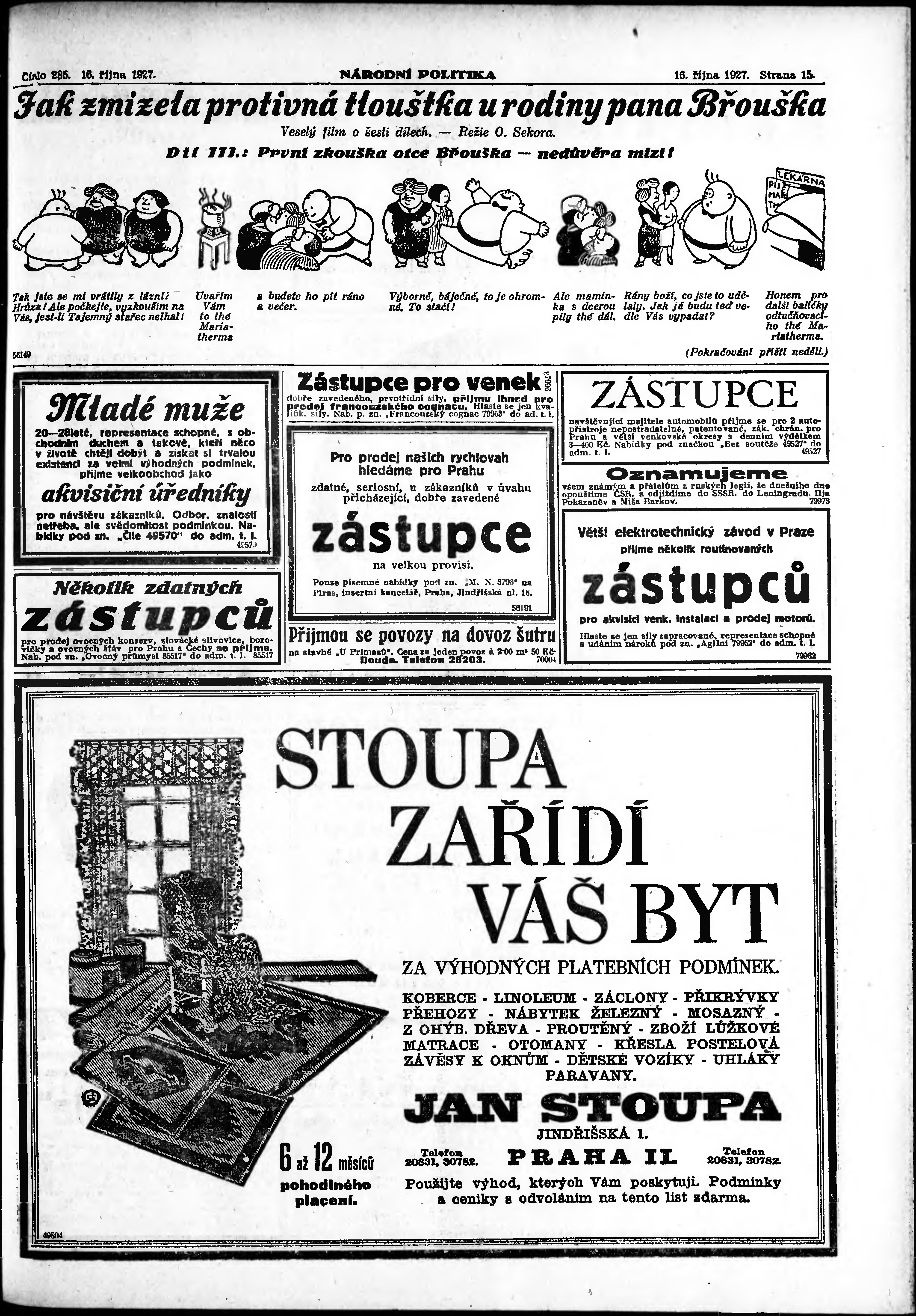 * Datum vydání výtisku: 16.10.1927 Číslo výtisku: 285 Poznámky k výtisku: ranní vydání;
