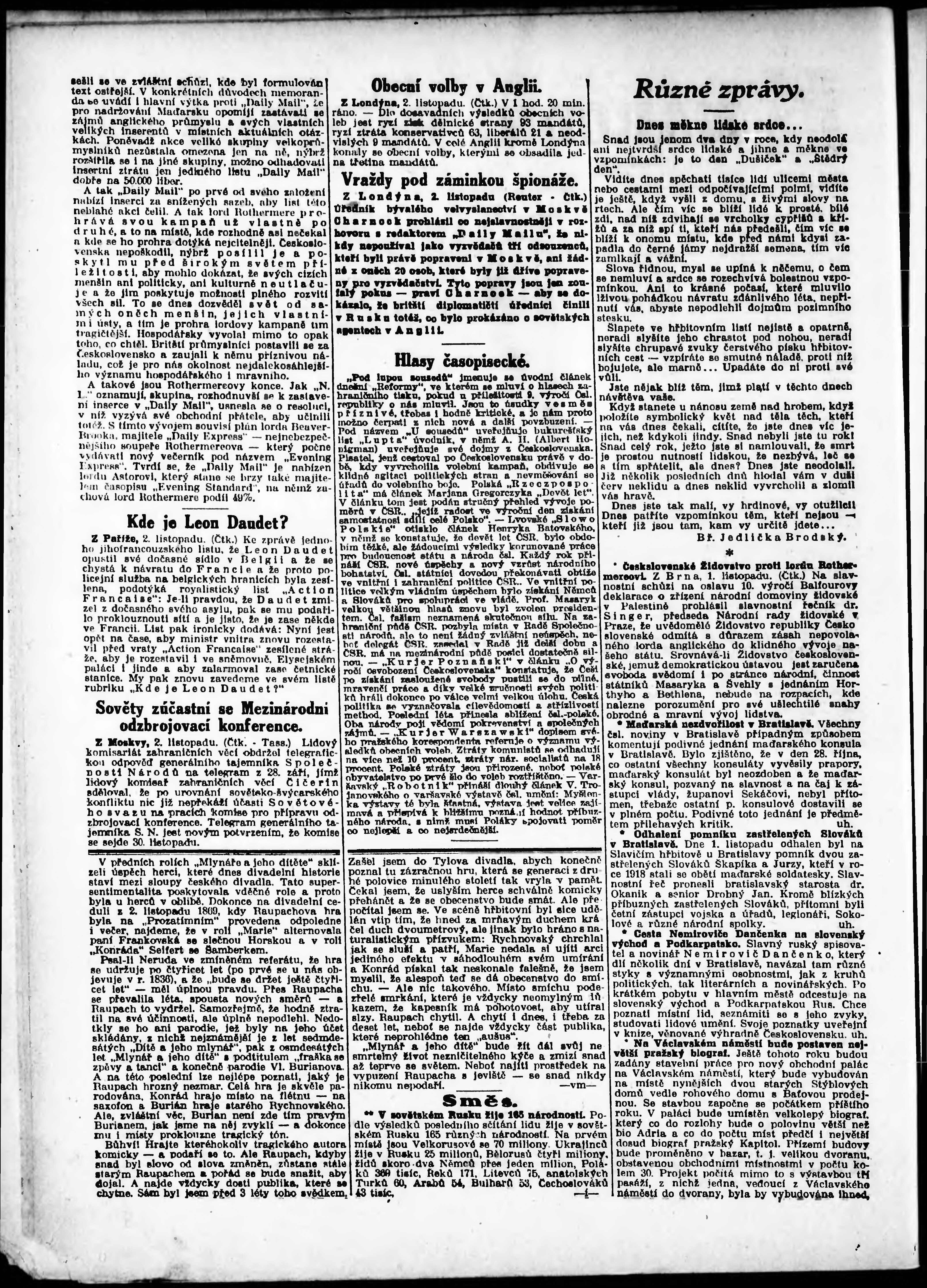 * Datum vydání výtisku: 2.11.1927 Číslo výtisku: 302 Poznámky k výtisku: odpolední vydání;