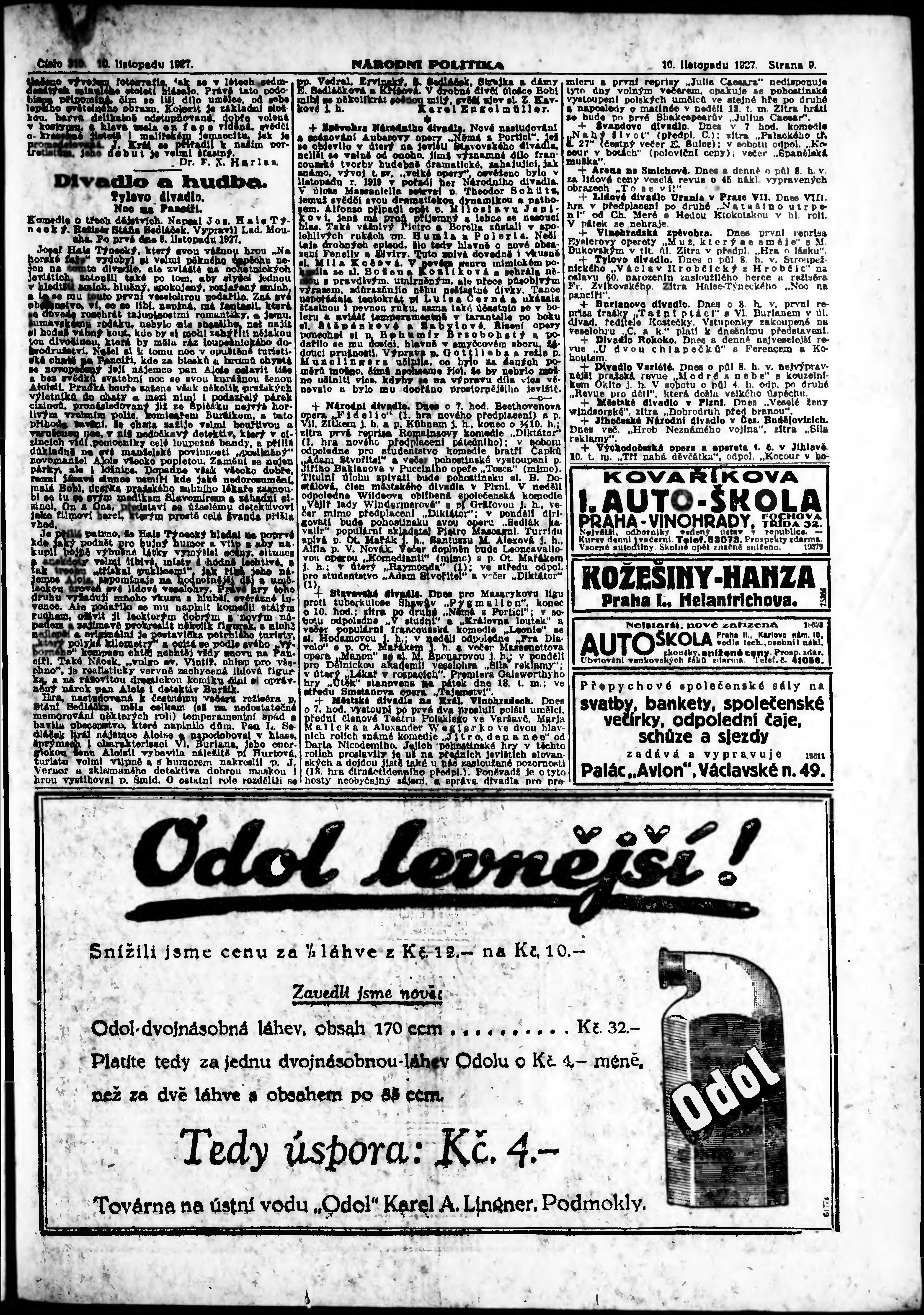 * Datum vydání výtisku: 10.11.1927 Číslo výtisku: 310 Poznámky k výtisku: ranní vydání; vydání pro Prahu;