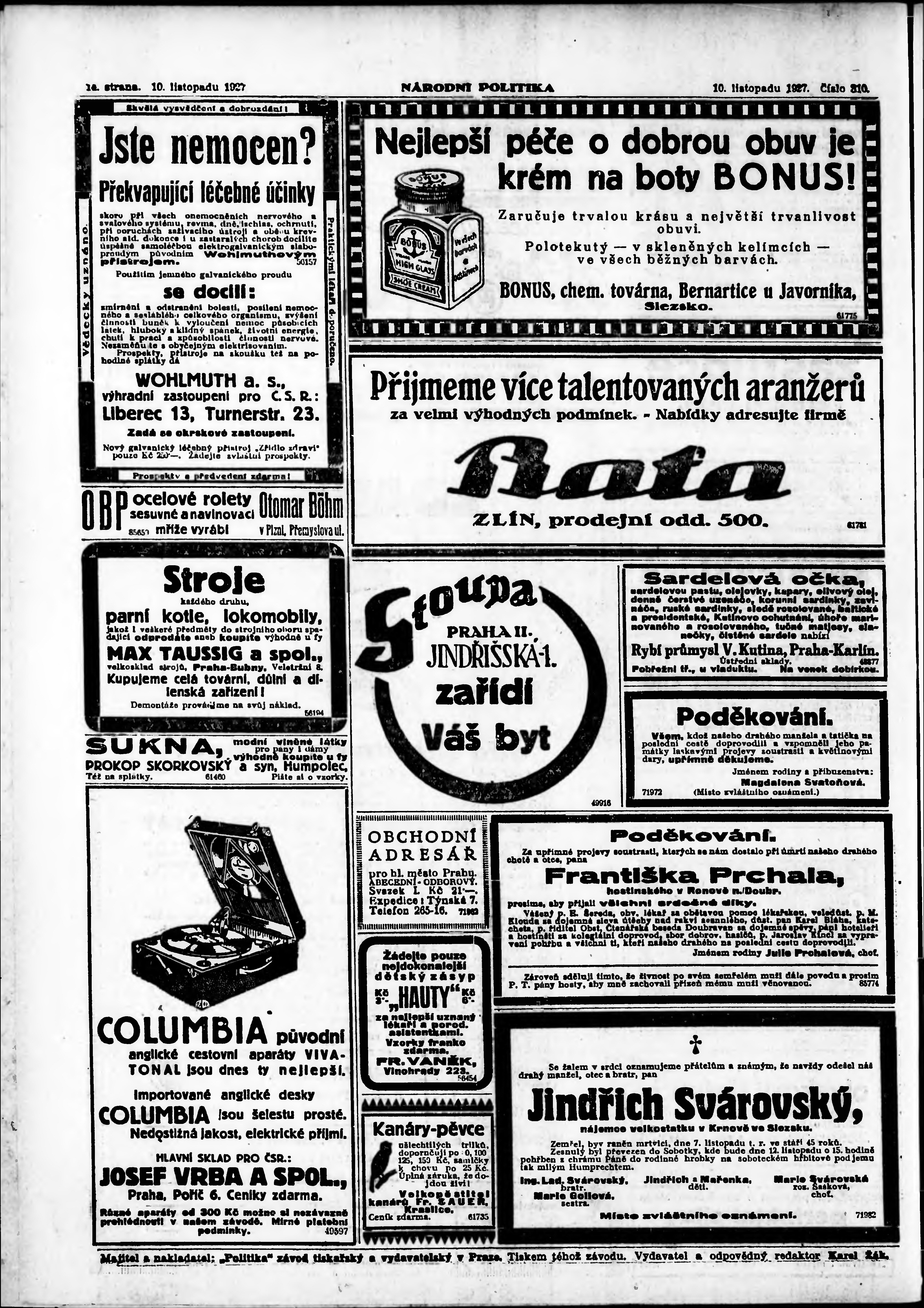 ranní vydání; vydání pro Prahu;