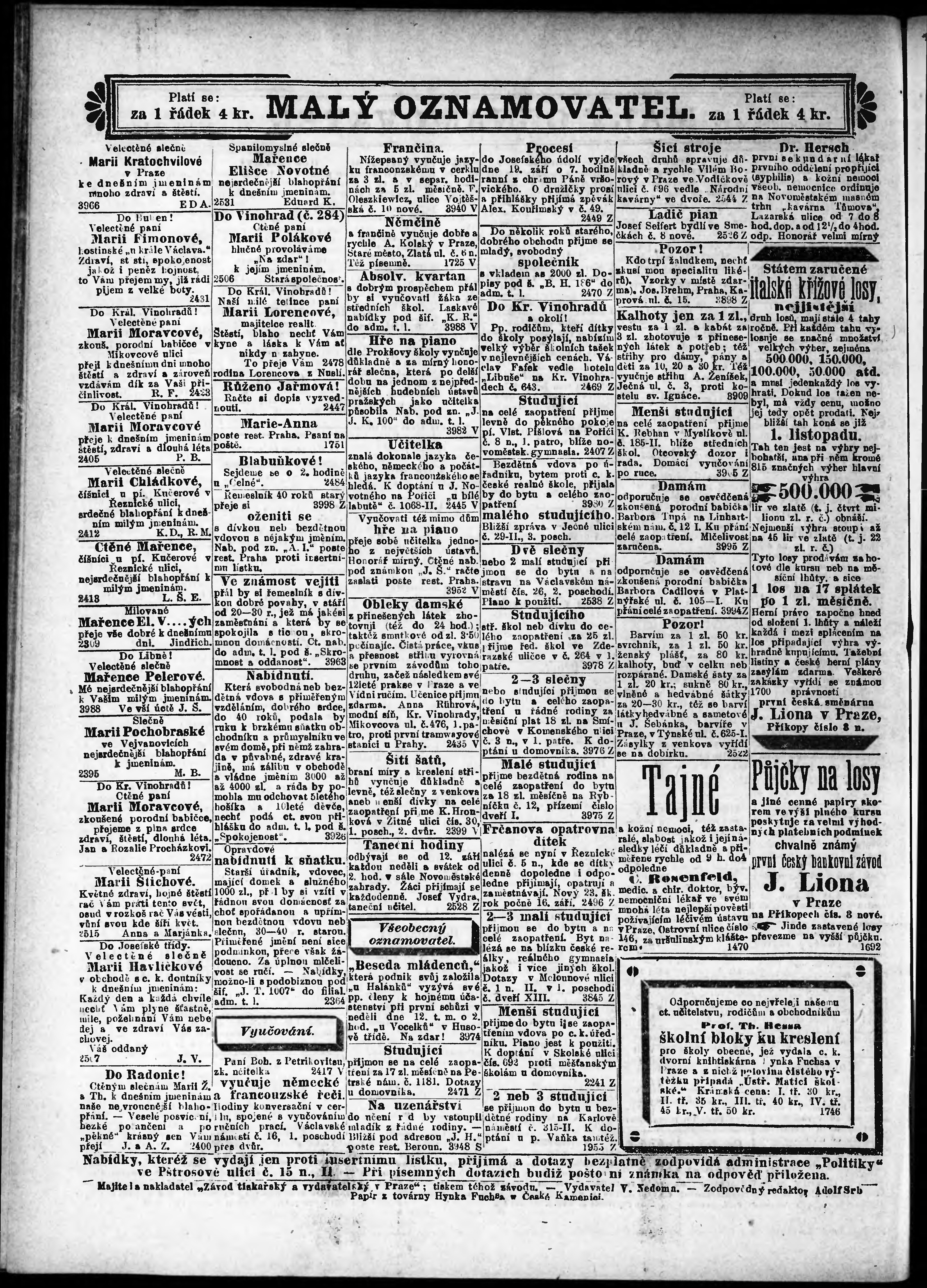 Poznámky k výtisku: