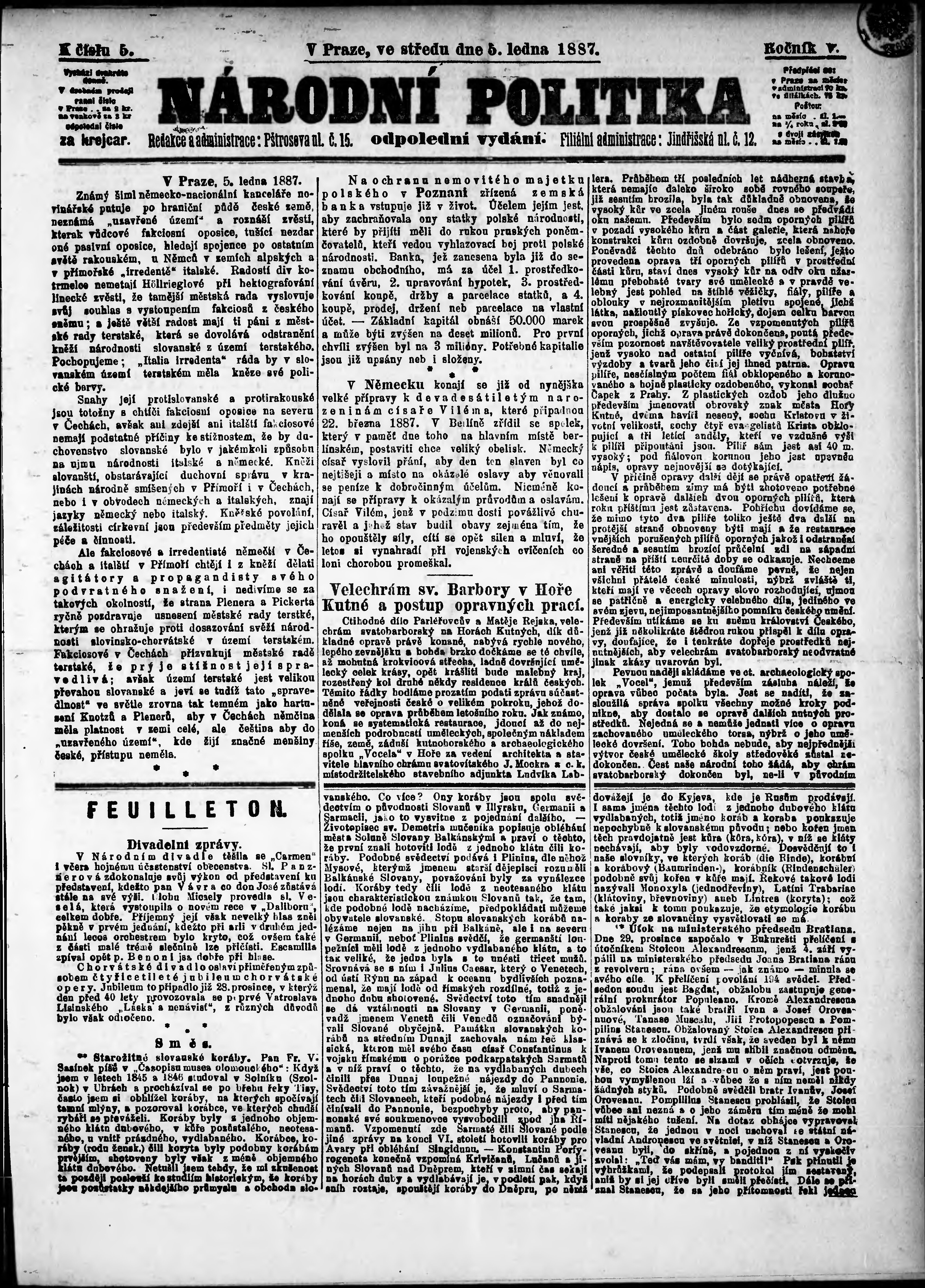 * Datum vydání výtisku: 5.1.1887 Číslo výtisku: 5 Poznámky k výtisku: odpolední vydání;