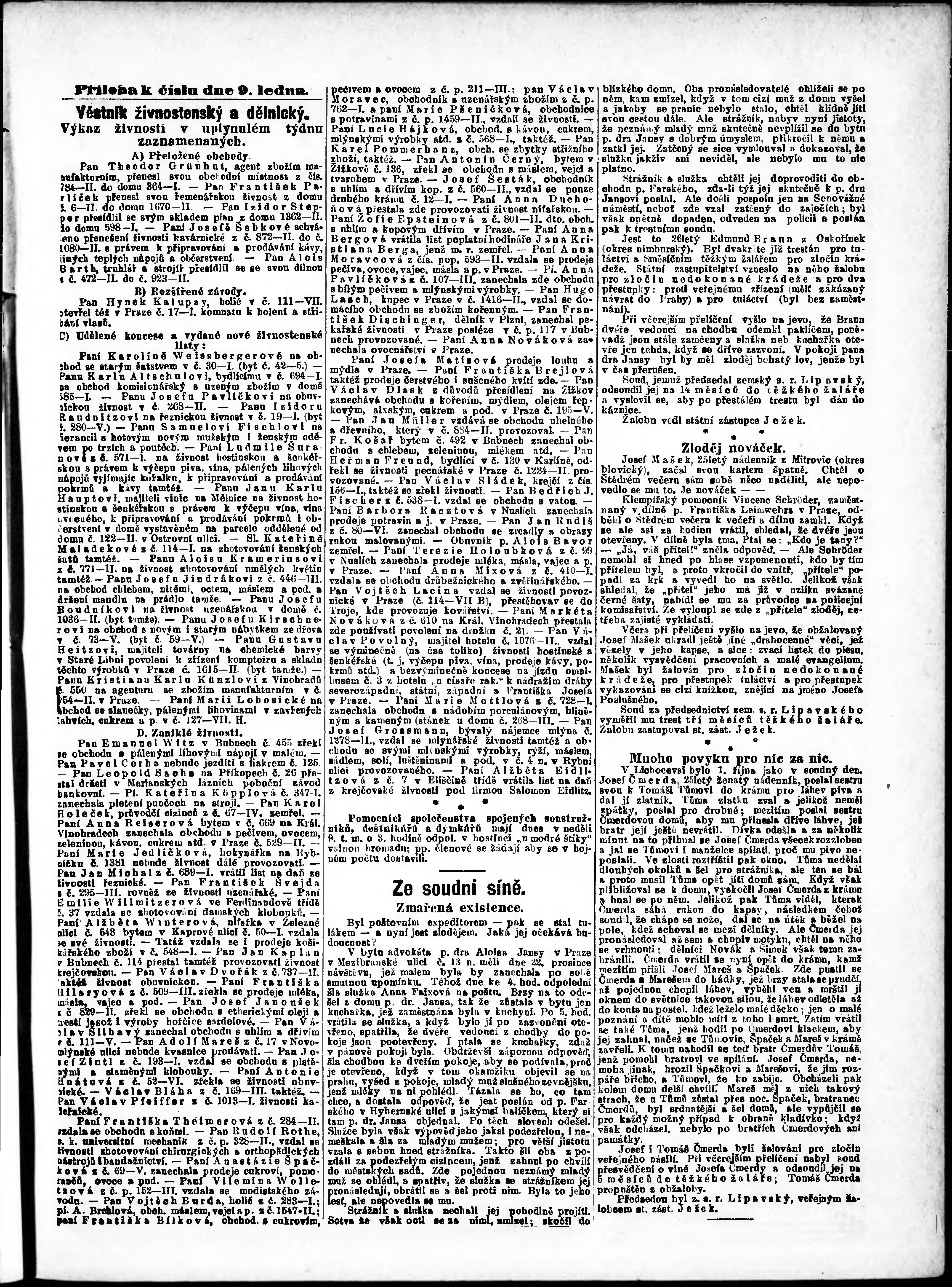 * Datum vydání výtisku: 9.1.1887 Číslo výtisku: 9 Poznámky k výtisku: ranní vydání;