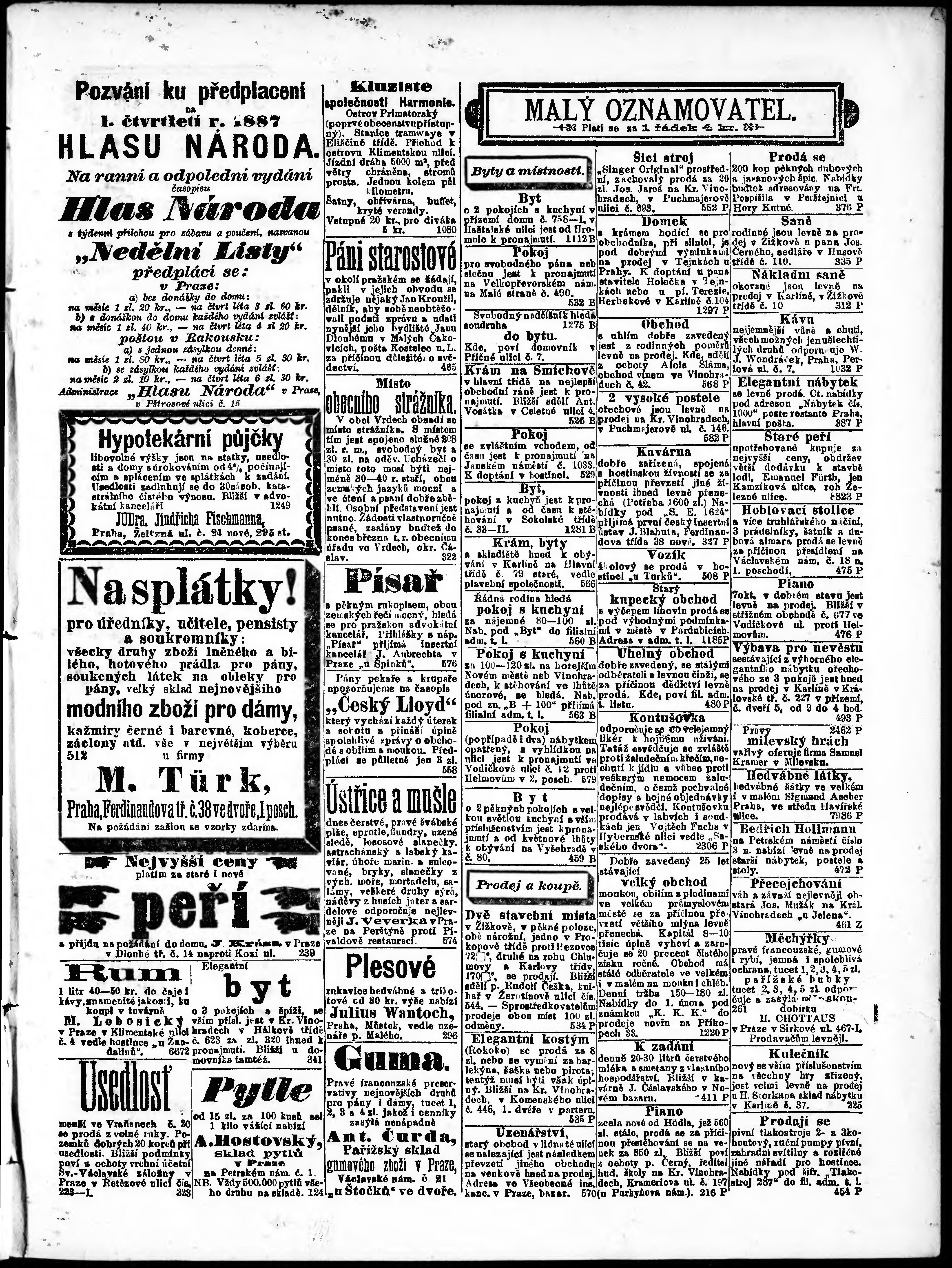 * Datum vydání výtisku: 12.1.1887 Číslo výtisku: 12 Poznámky k výtisku: ranní vydání;