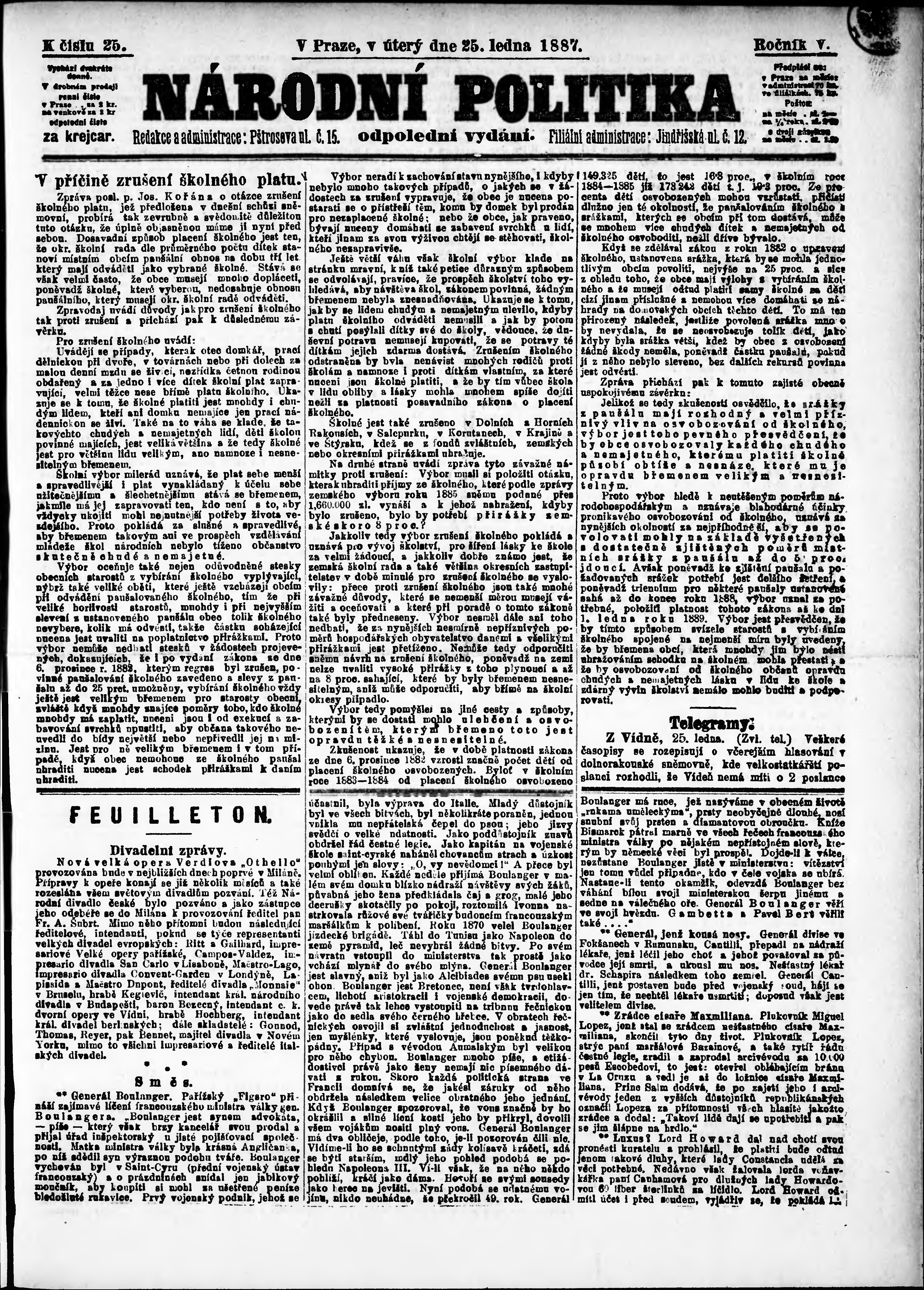 * Datum vydání výtisku: 25.1.1887 Číslo výtisku: 25 Poznámky k výtisku: odpolední vydání;