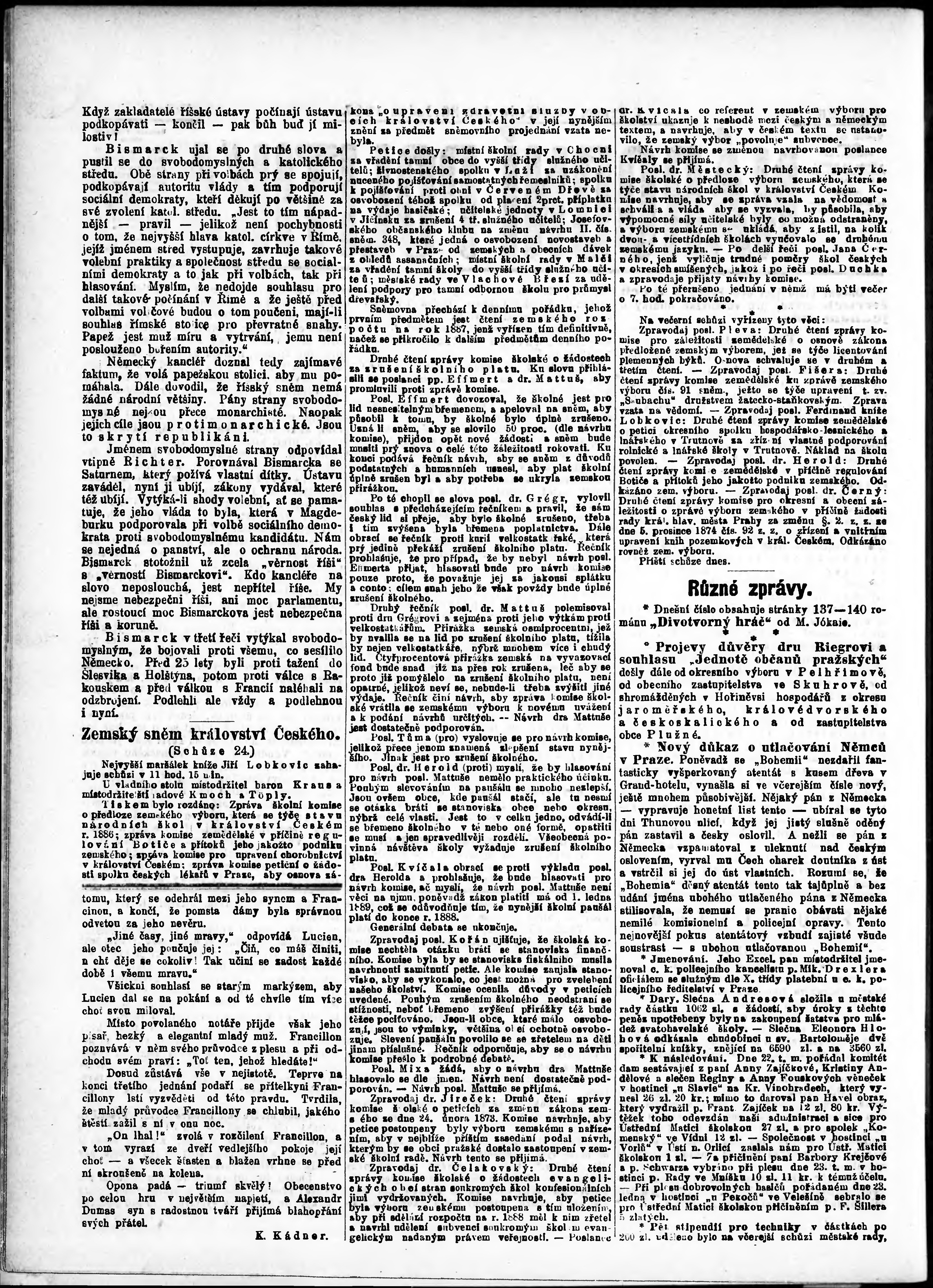 * Datum vydání výtisku: 26.1.1887 Číslo výtisku: 26 Poznámky k výtisku: ranní vydání;