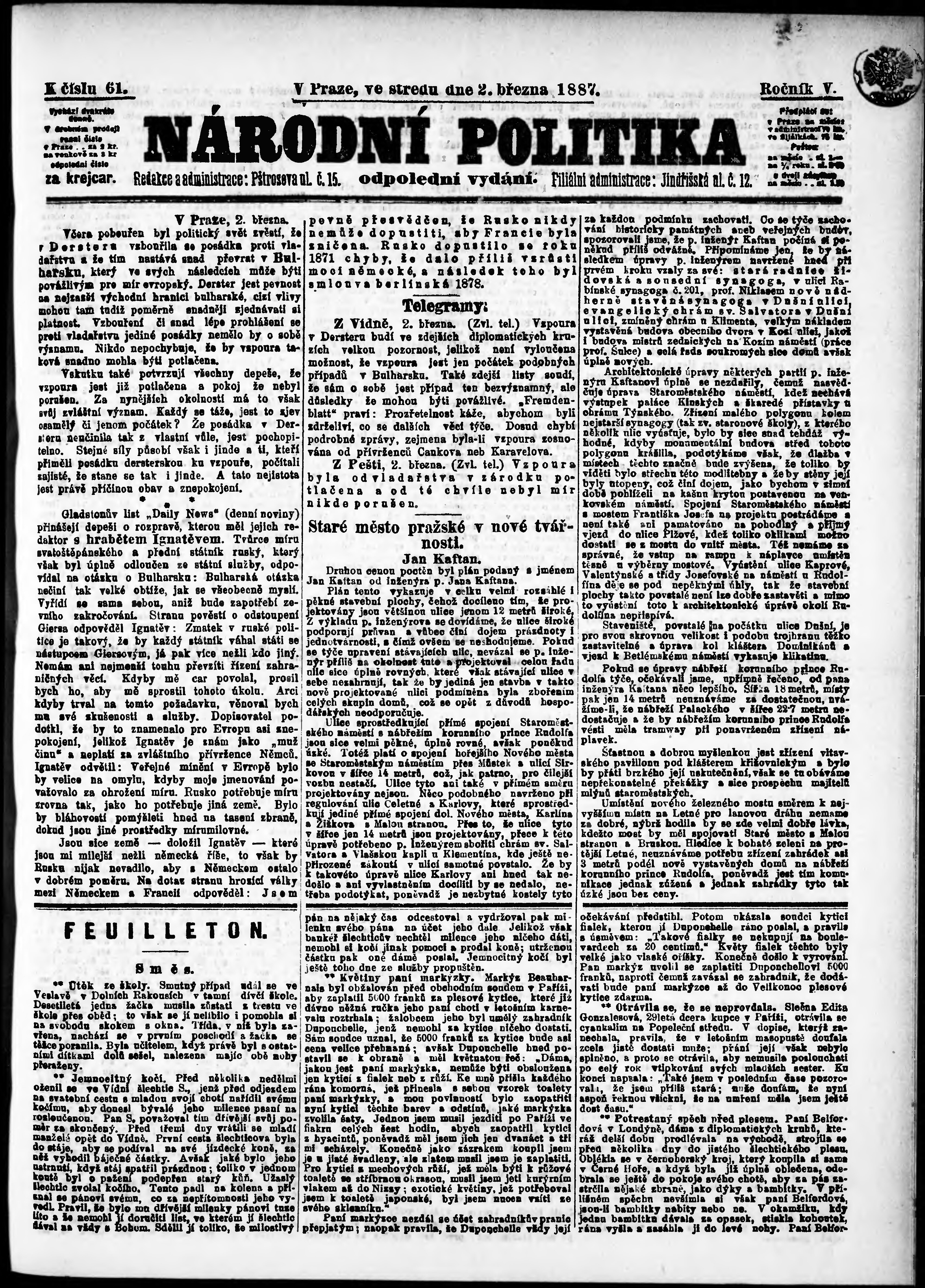 * Datum vydání výtisku: 2.3.1887 Číslo výtisku: 61 Poznámky k výtisku: odpolední vydání;