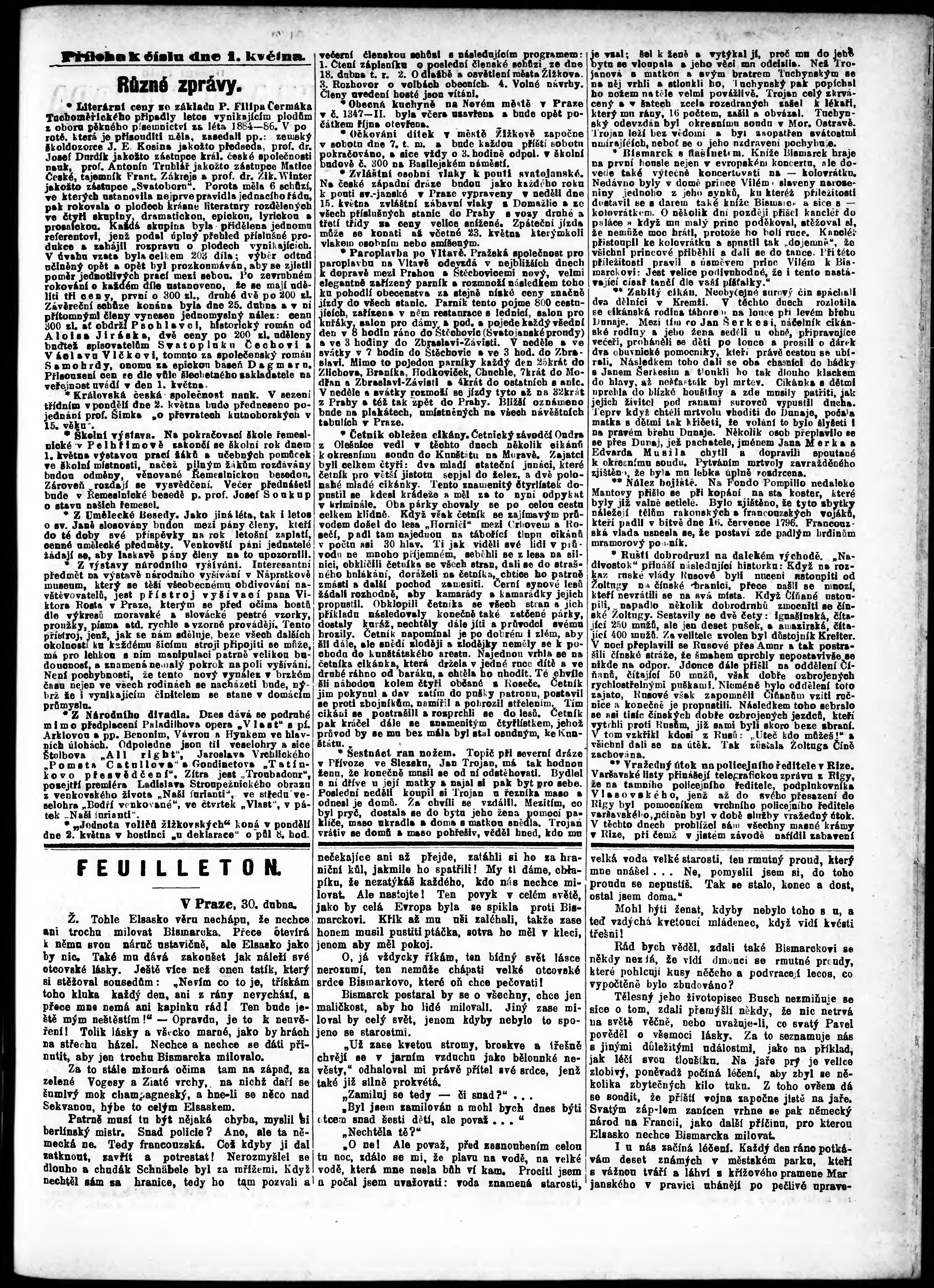 * Datum vydání výtisku: 1.5.1887 Číslo výtisku: 120 Poznámky k výtisku: ranní vydání;