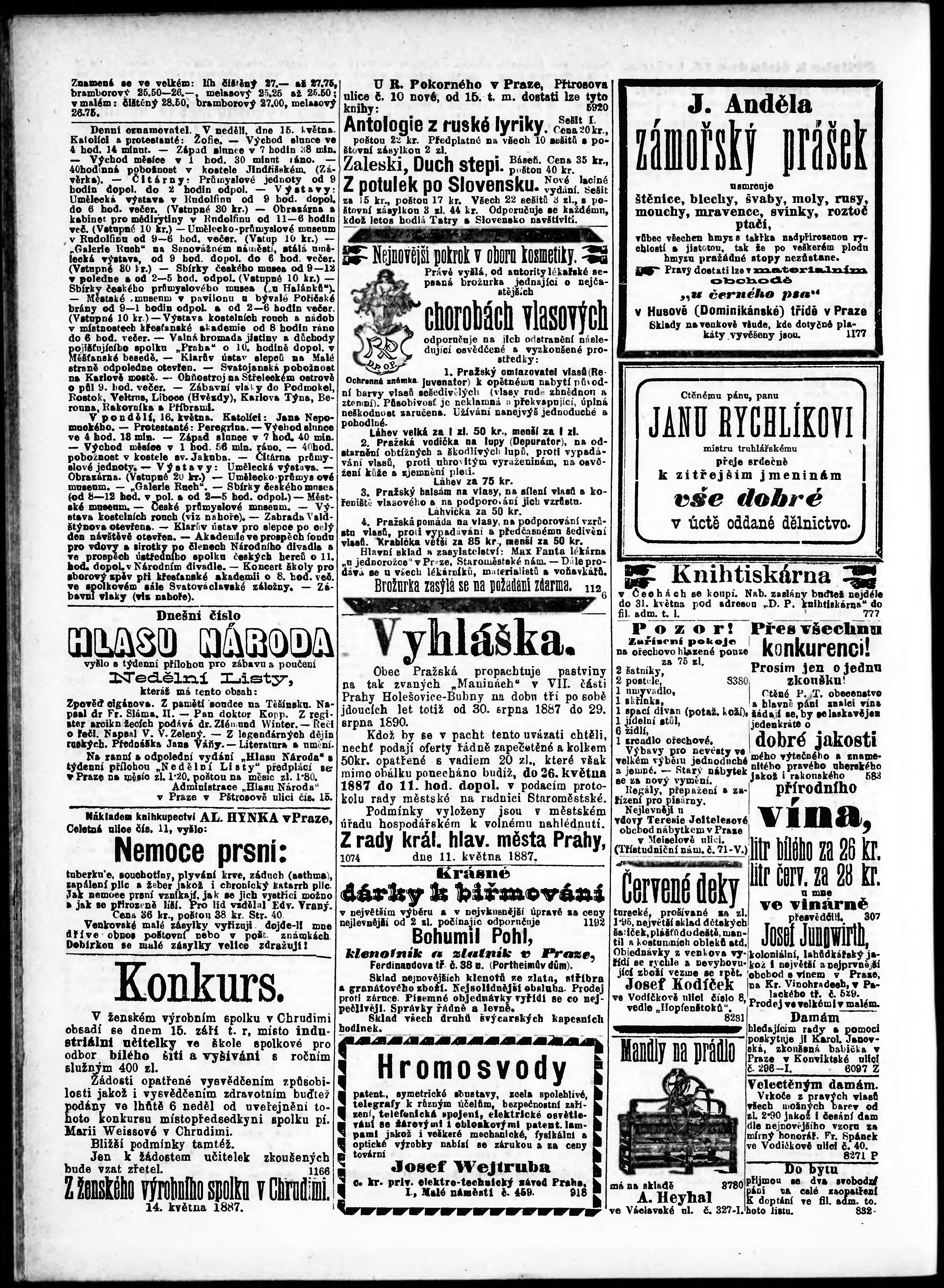 * Datum vydání výtisku: 15.5.1887 Číslo výtisku: 134 Poznámky k výtisku: ranní vydání;