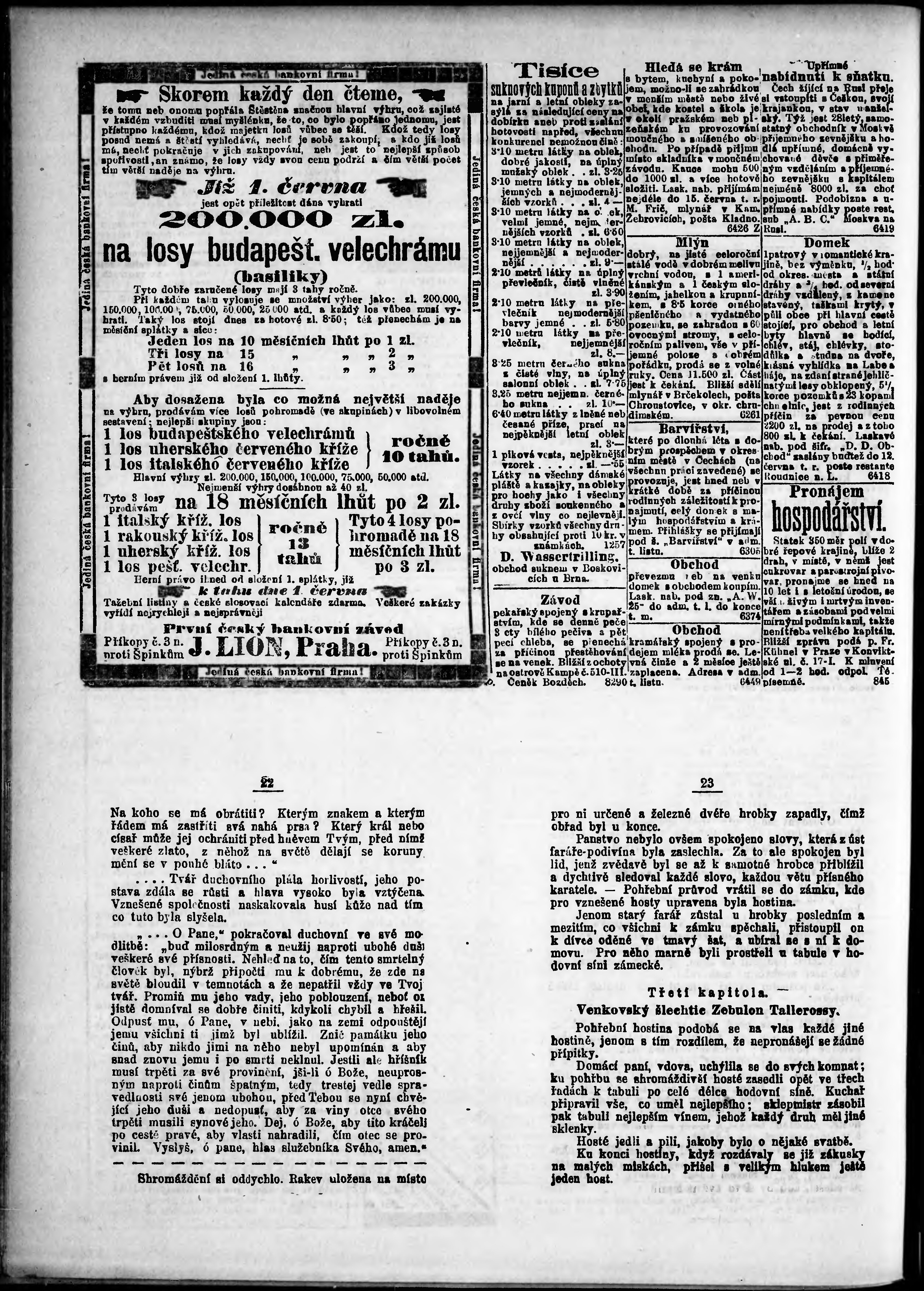 * Datum vydání výtisku: 26.5.1887 Číslo výtisku: 144 Poznámky k výtisku: ranní vydání;