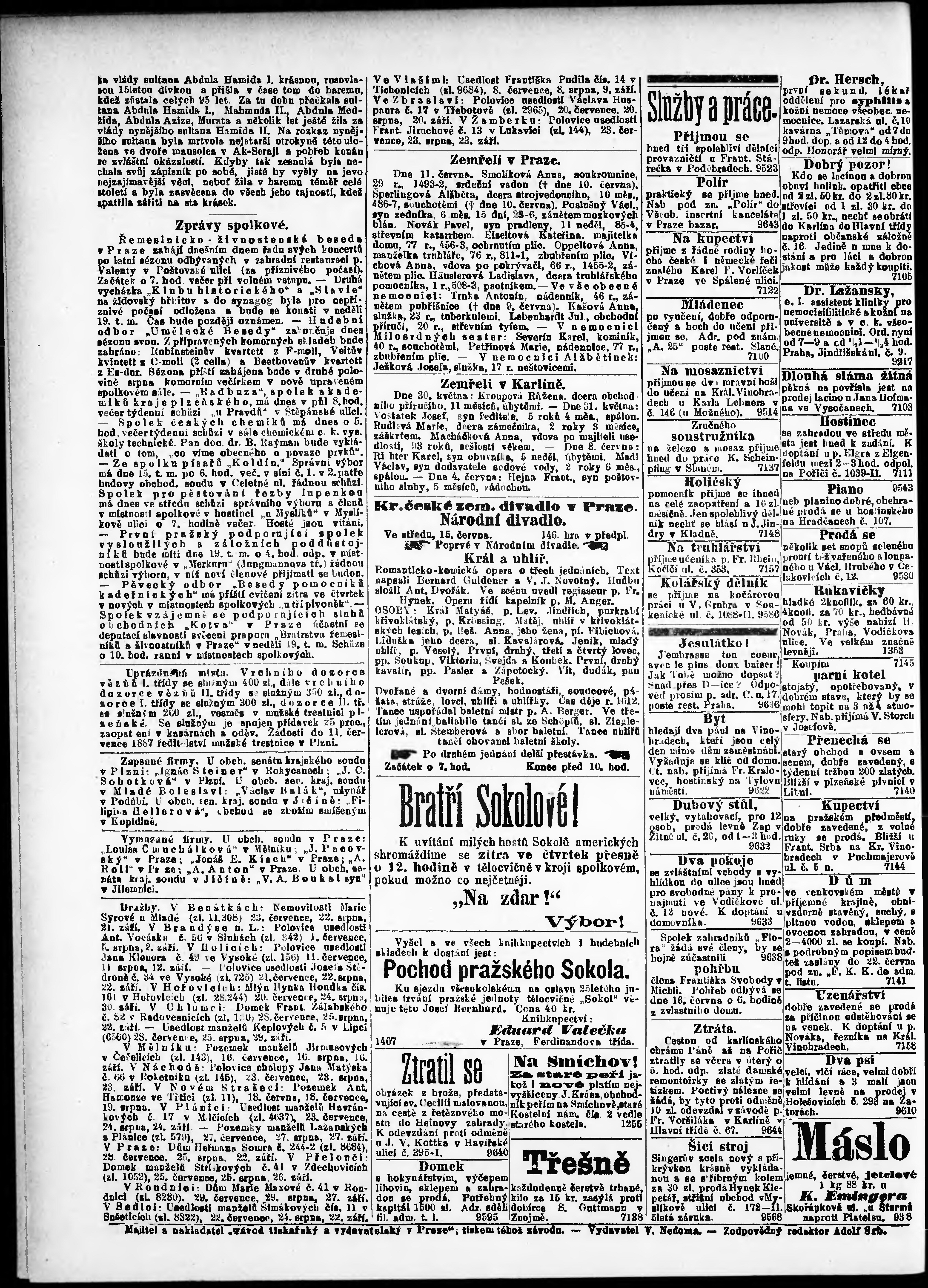* Datum vydání výtisku: 15.6.1887 Číslo výtisku: 163 Poznámky k výtisku: odpolední vydání;
