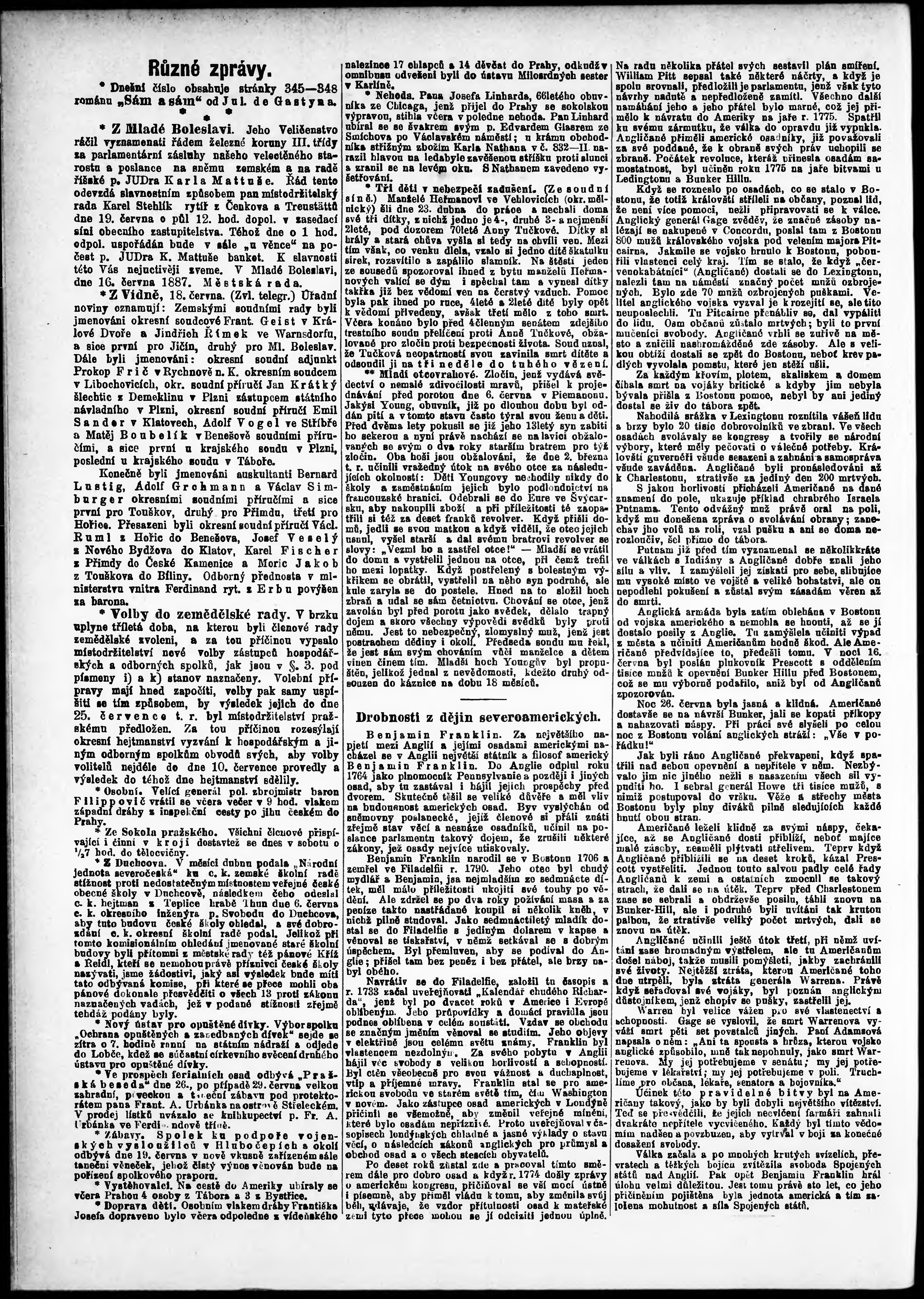 * Datum vydání výtisku: 18.6.1887 Číslo výtisku: 166 Poznámky k výtisku: odpolední vydání;
