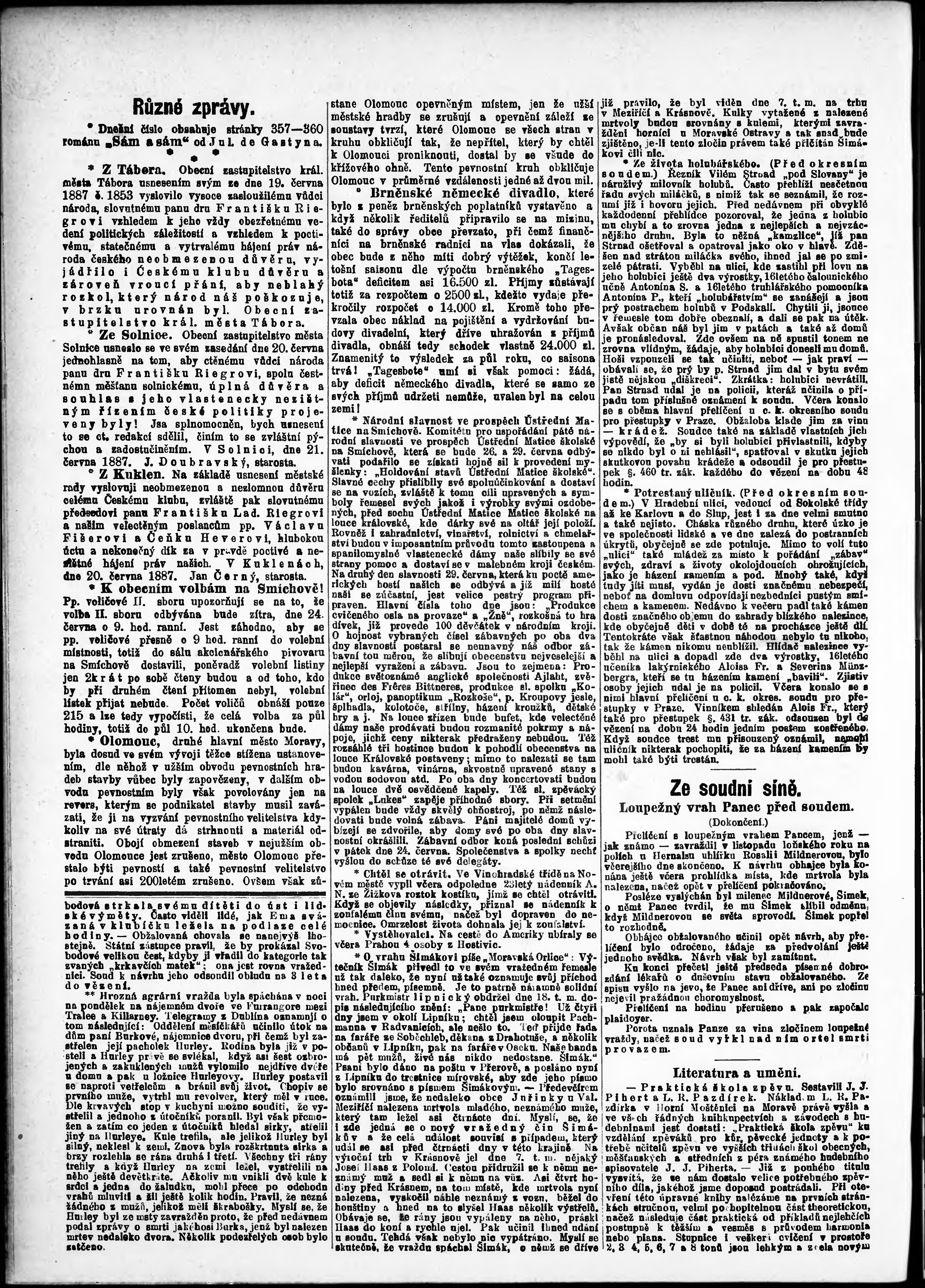 * Datum vydání výtisku: 23.6.1887 Číslo výtisku: 171 Poznámky k výtisku: odpolední vydání;