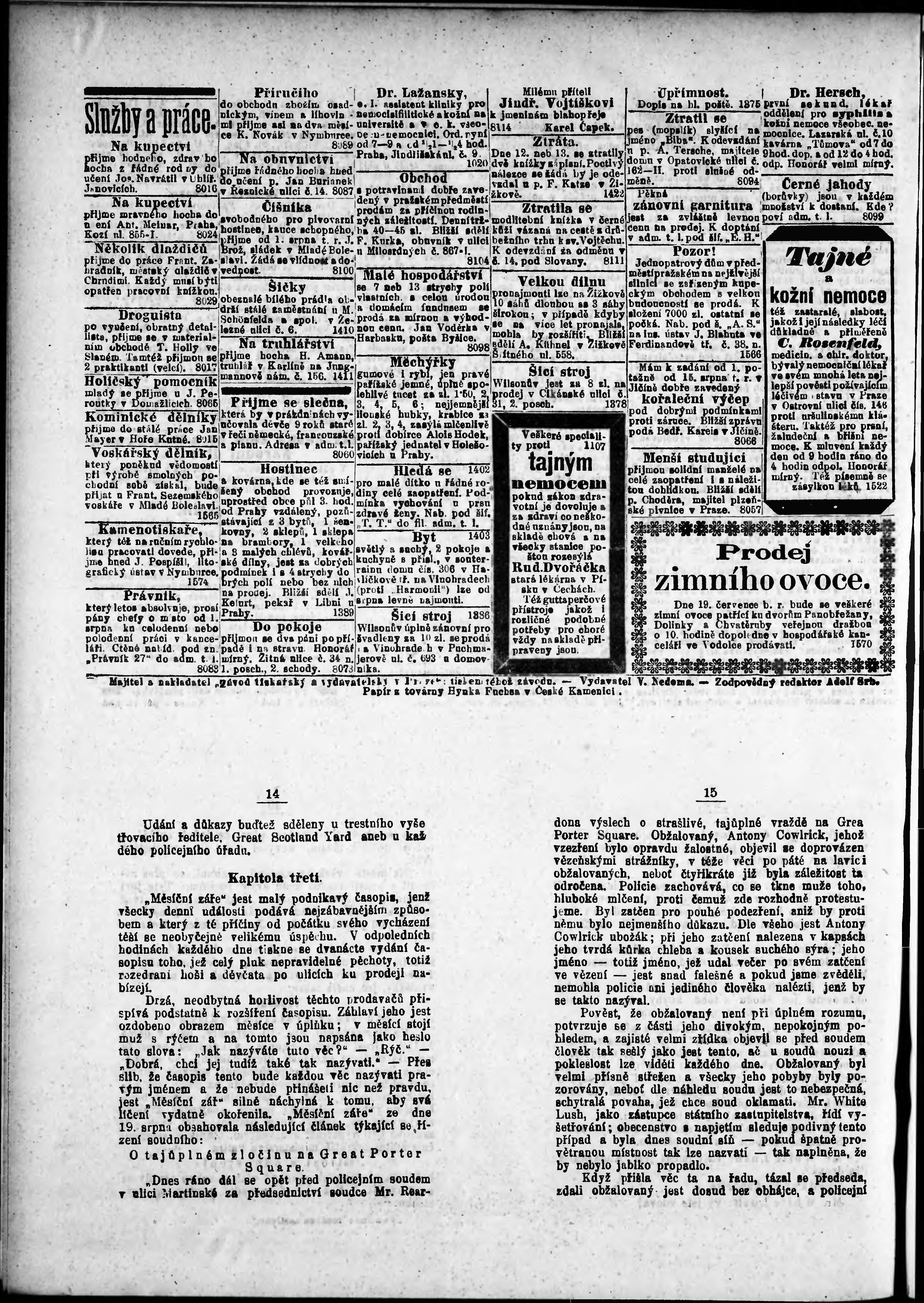 * Datum vydání výtisku: 15.7.1887 Číslo výtisku: 193 Poznámky k výtisku: odpolední vydání;
