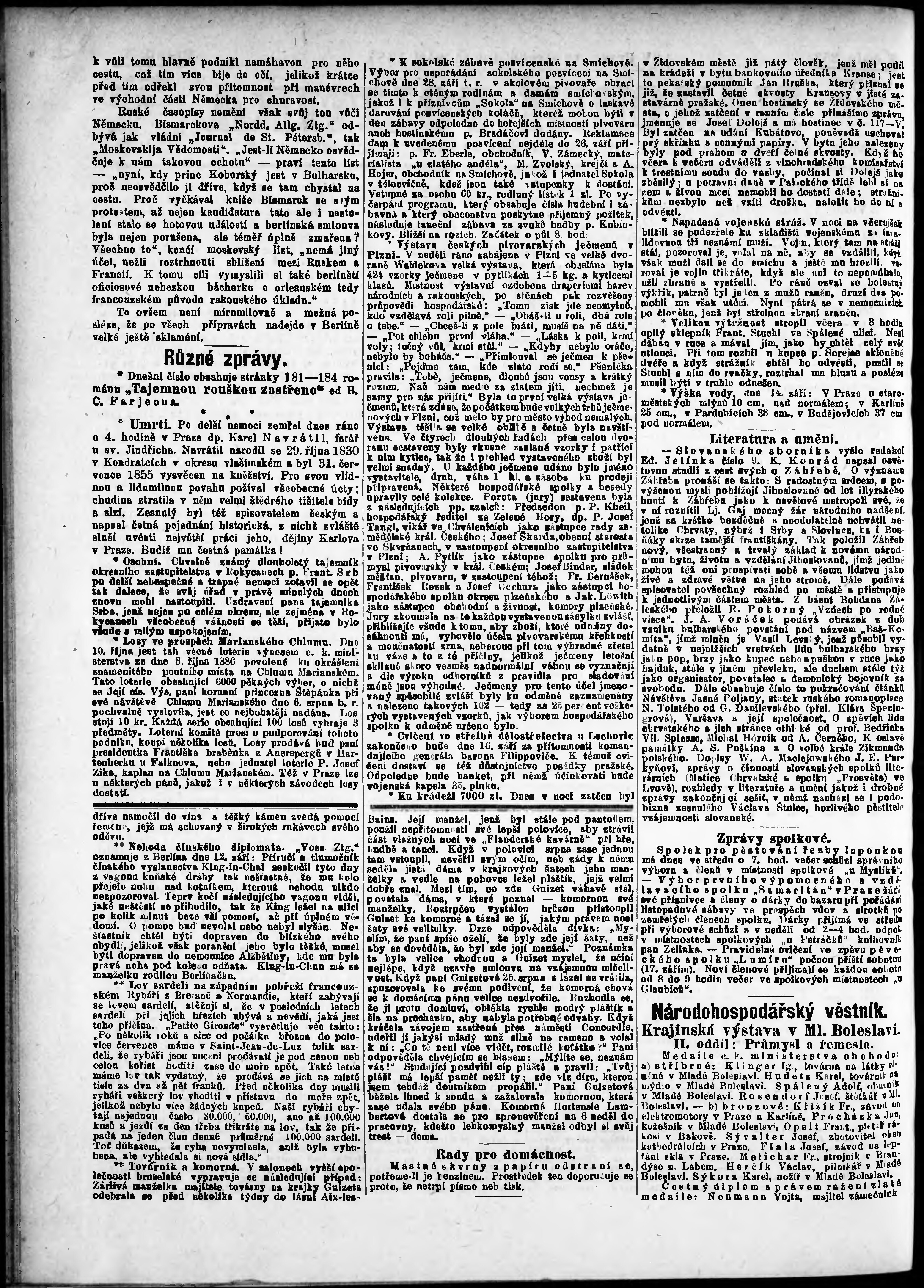 * Datum vydání výtisku: 14.9.1887 Číslo výtisku: 253 Poznámky k výtisku: odpolední vydání;