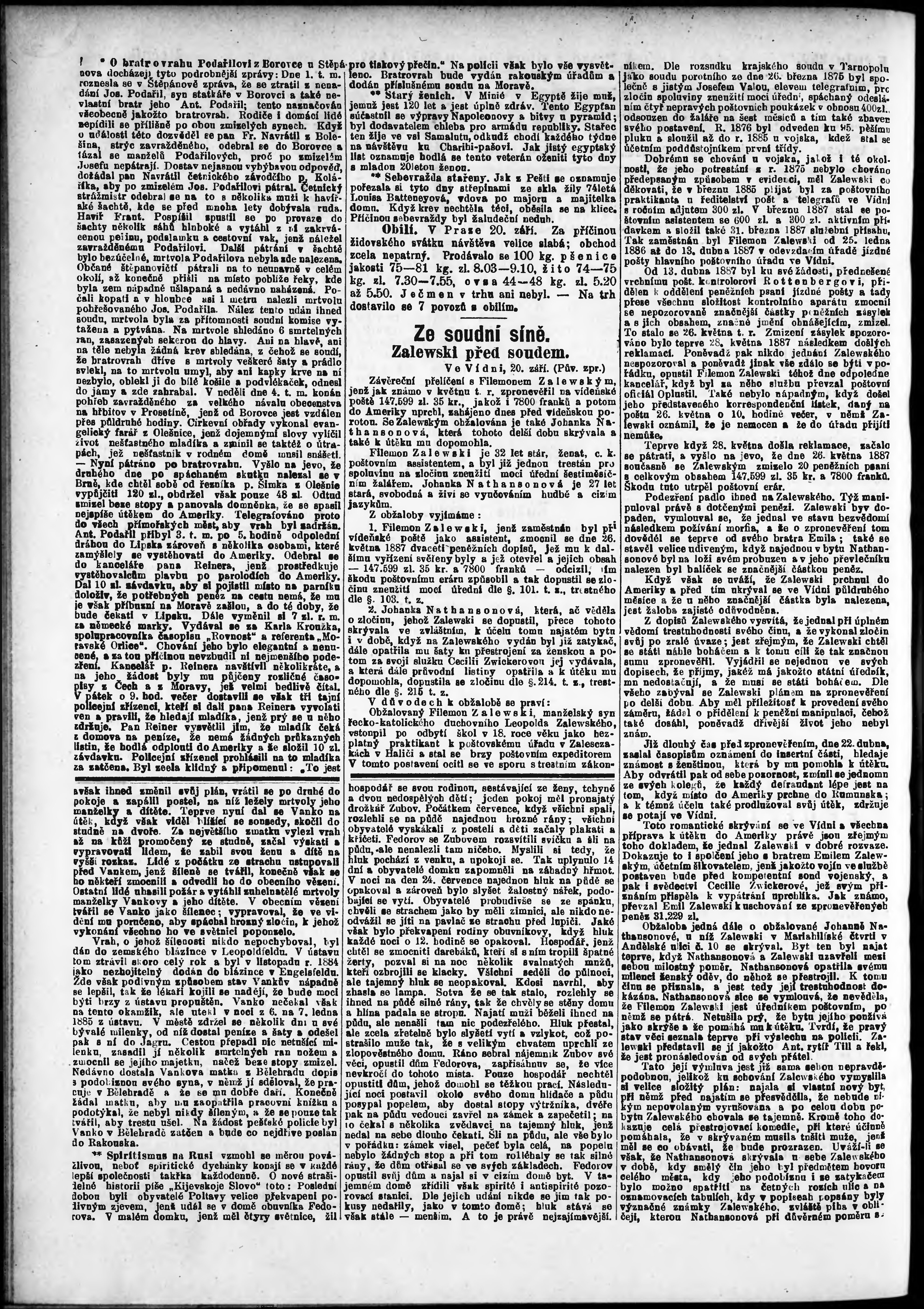 * Datum vydání výtisku: 20.9.1887 Číslo výtisku: 259 Poznámky k výtisku: odpolední vydání;