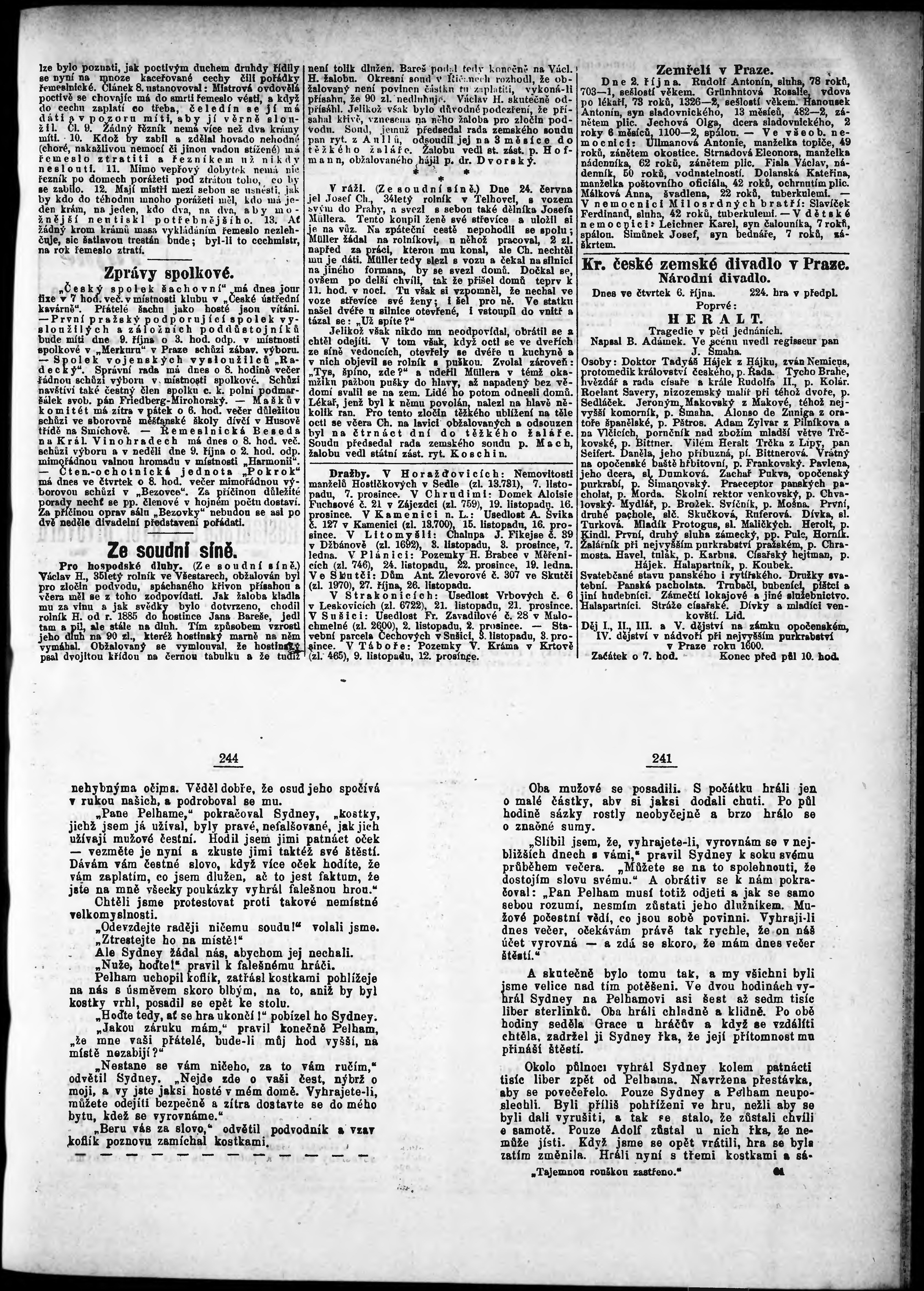 * Datum vydání výtisku: 6.10.1887 Číslo výtisku: 275 Poznámky k výtisku: odpolední vydání;