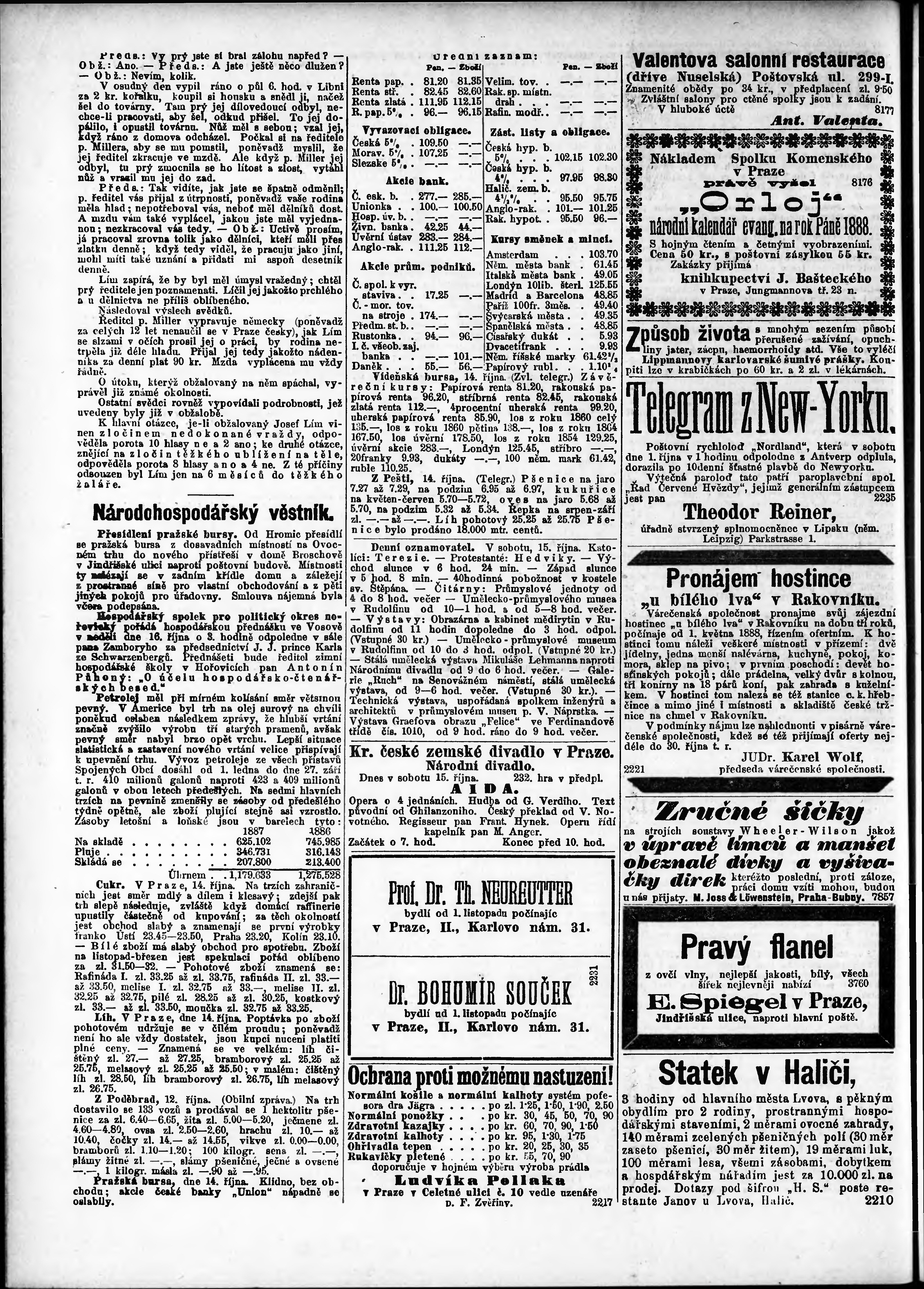 * Datum vydání výtisku: 15.10.1887 Číslo výtisku: 284 Poznámky k výtisku: ranní vydání;