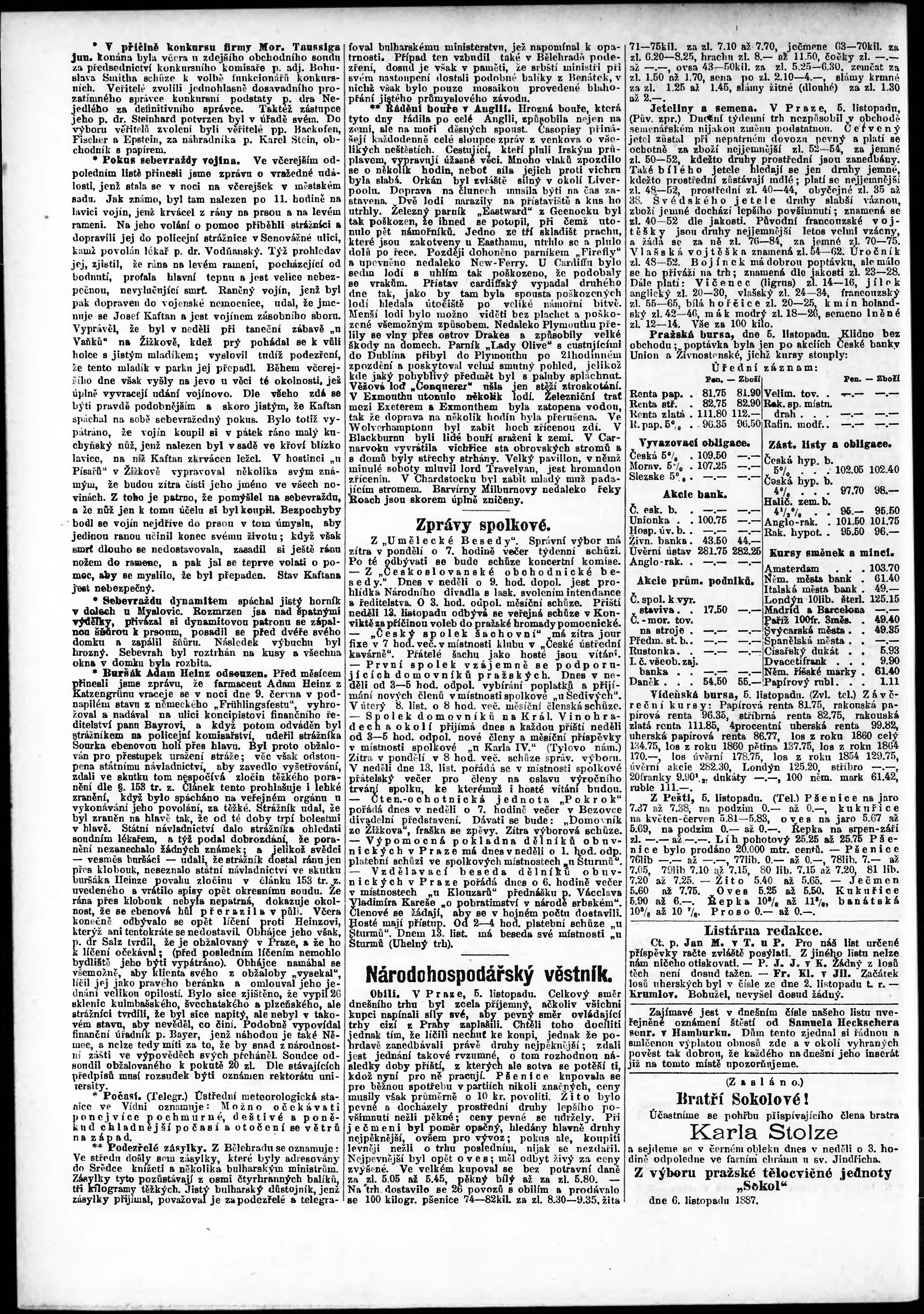 * Datum vydání výtisku: 6.11.1887 Číslo výtisku: 306 Poznámky k výtisku: ranní vydání;