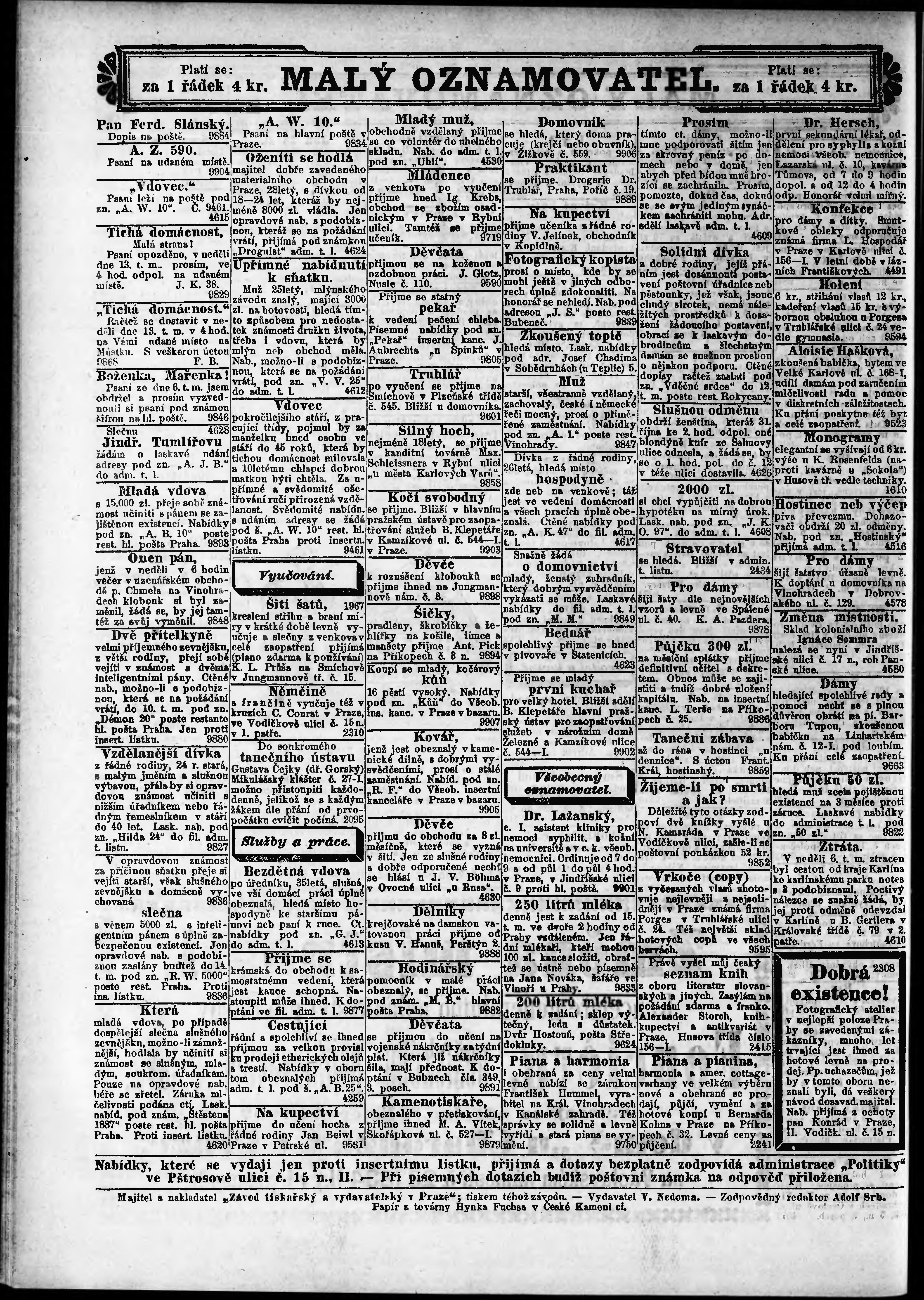 * Datum vydání výtisku: 8.11.1887 Číslo výtisku: 308 Poznámky k výtisku: ranní vydání;