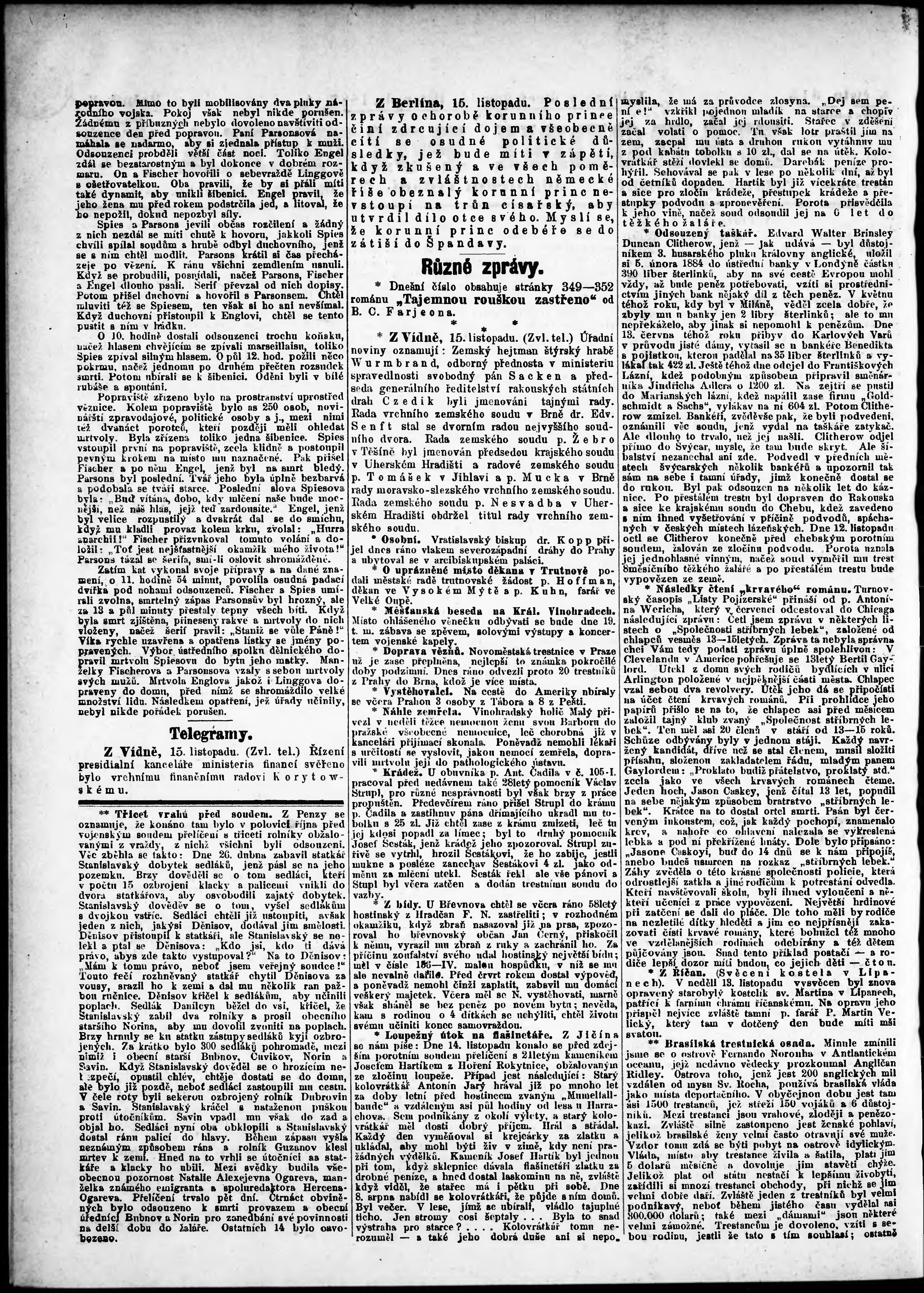 * Datum vydání výtisku: 15.11.1887 Číslo výtisku: 315 Poznámky k výtisku: odpolední vydání;