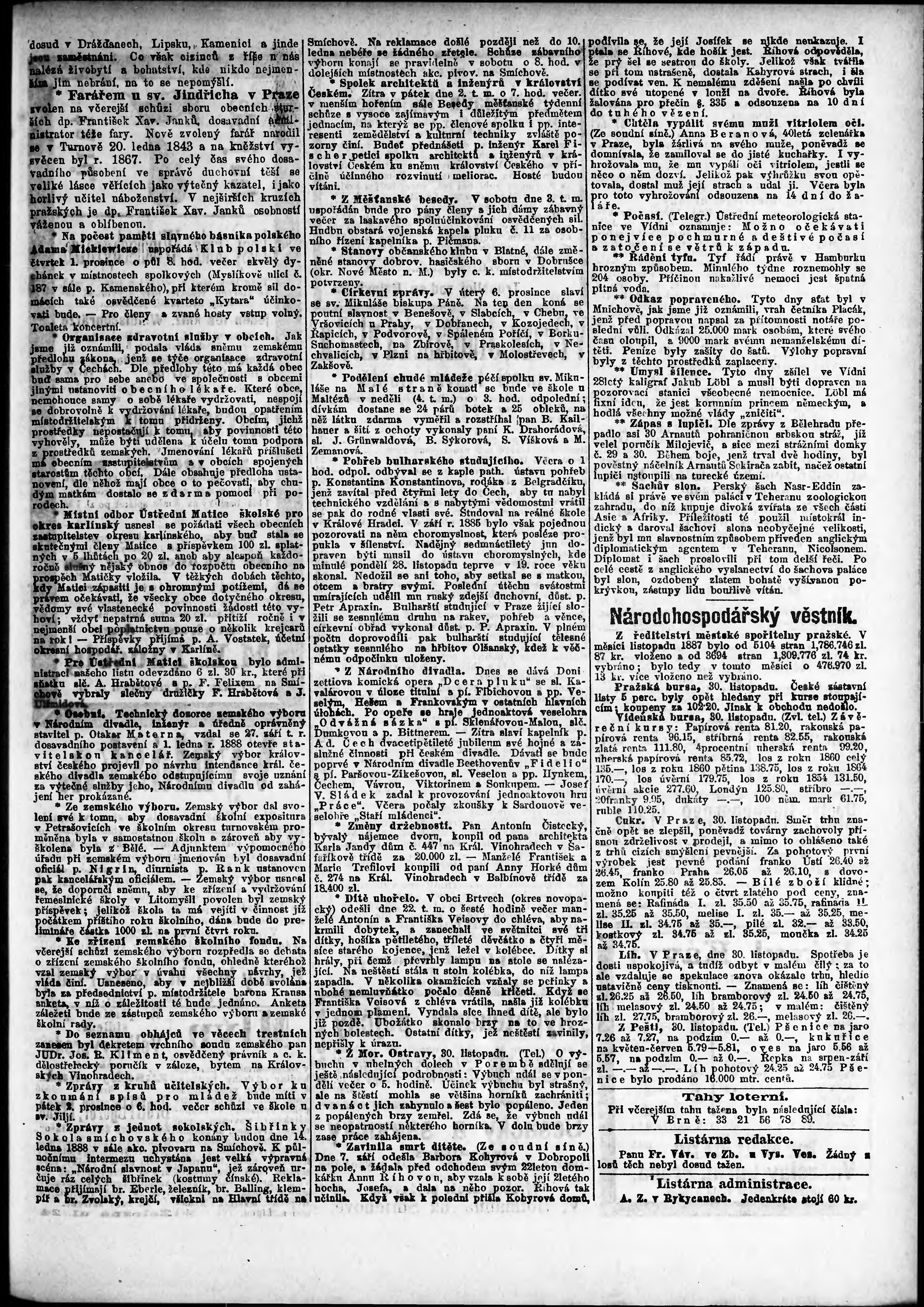 * Datum vydání výtisku: 1.12.1887 Číslo výtisku: 331 Poznámky k výtisku: ranní vydání;