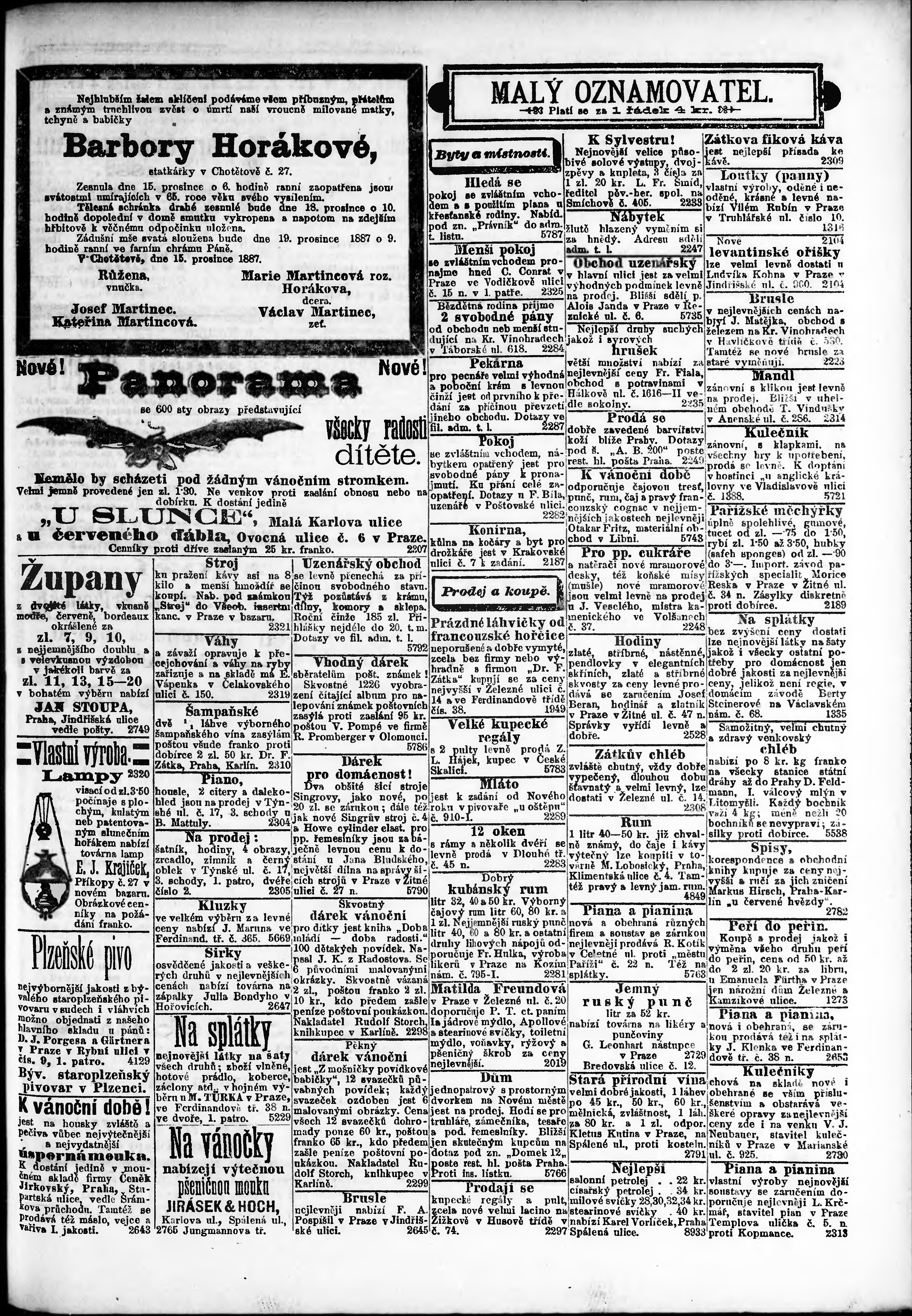 * Datum vydání výtisku: 16.12.1887 Číslo výtisku: 346 Poznámky k výtisku: ranní vydání;