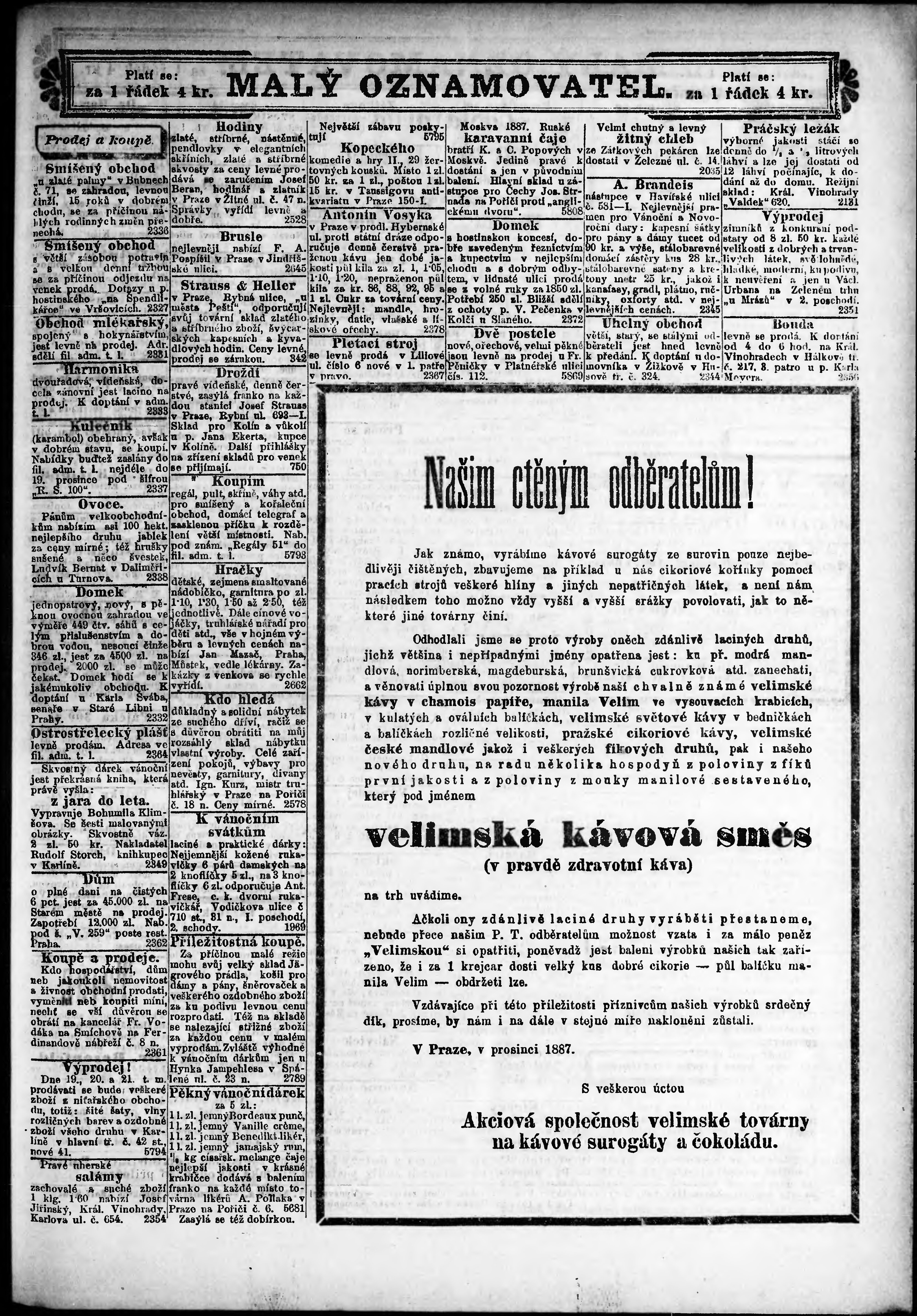* Datum vydání výtisku: 17.12.1887 Číslo výtisku: 347 Poznámky k výtisku: ranní vydání;