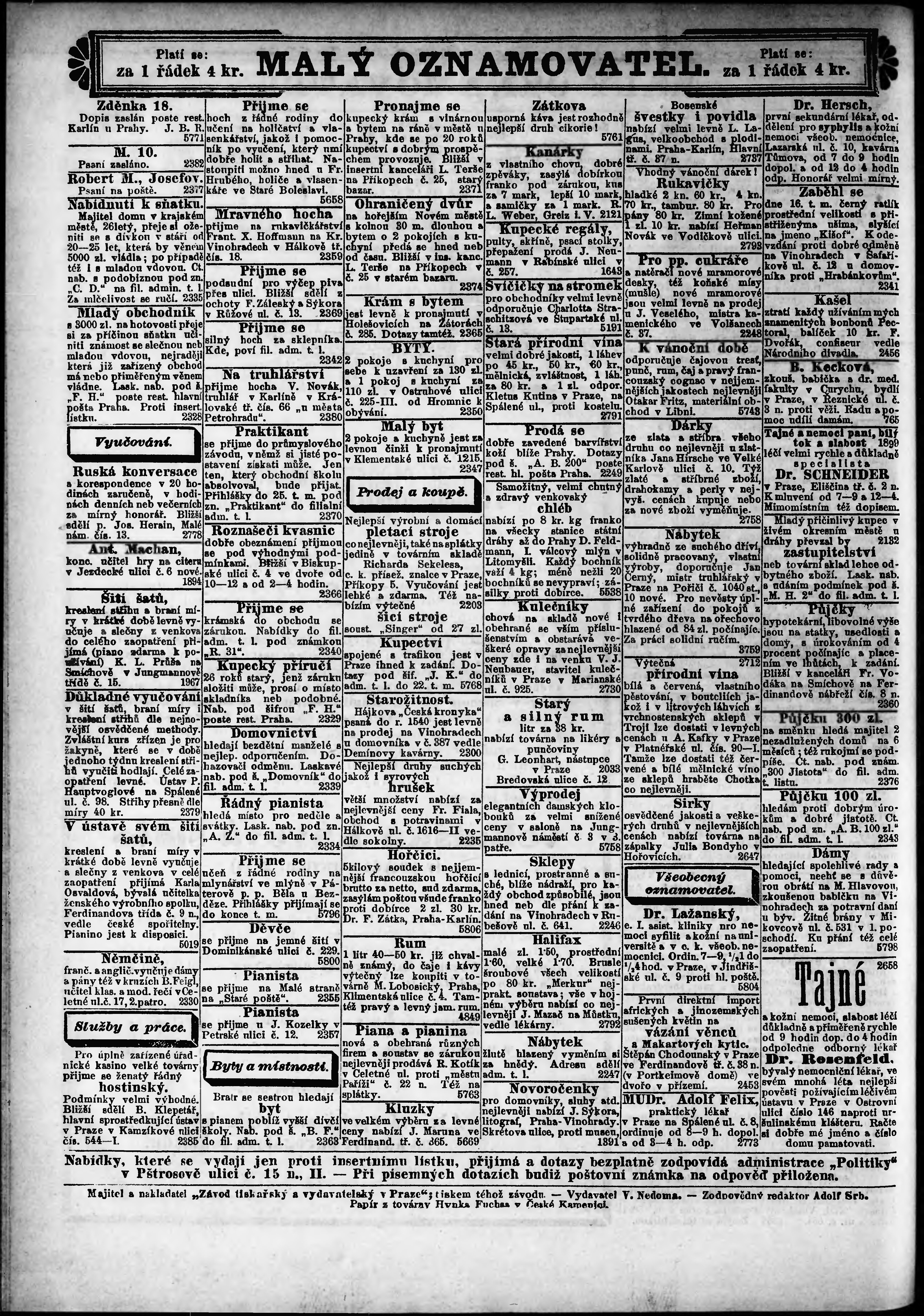 * Datum vydání výtisku: 17.12.1887 Číslo výtisku: 347 Poznámky k výtisku: ranní vydání;