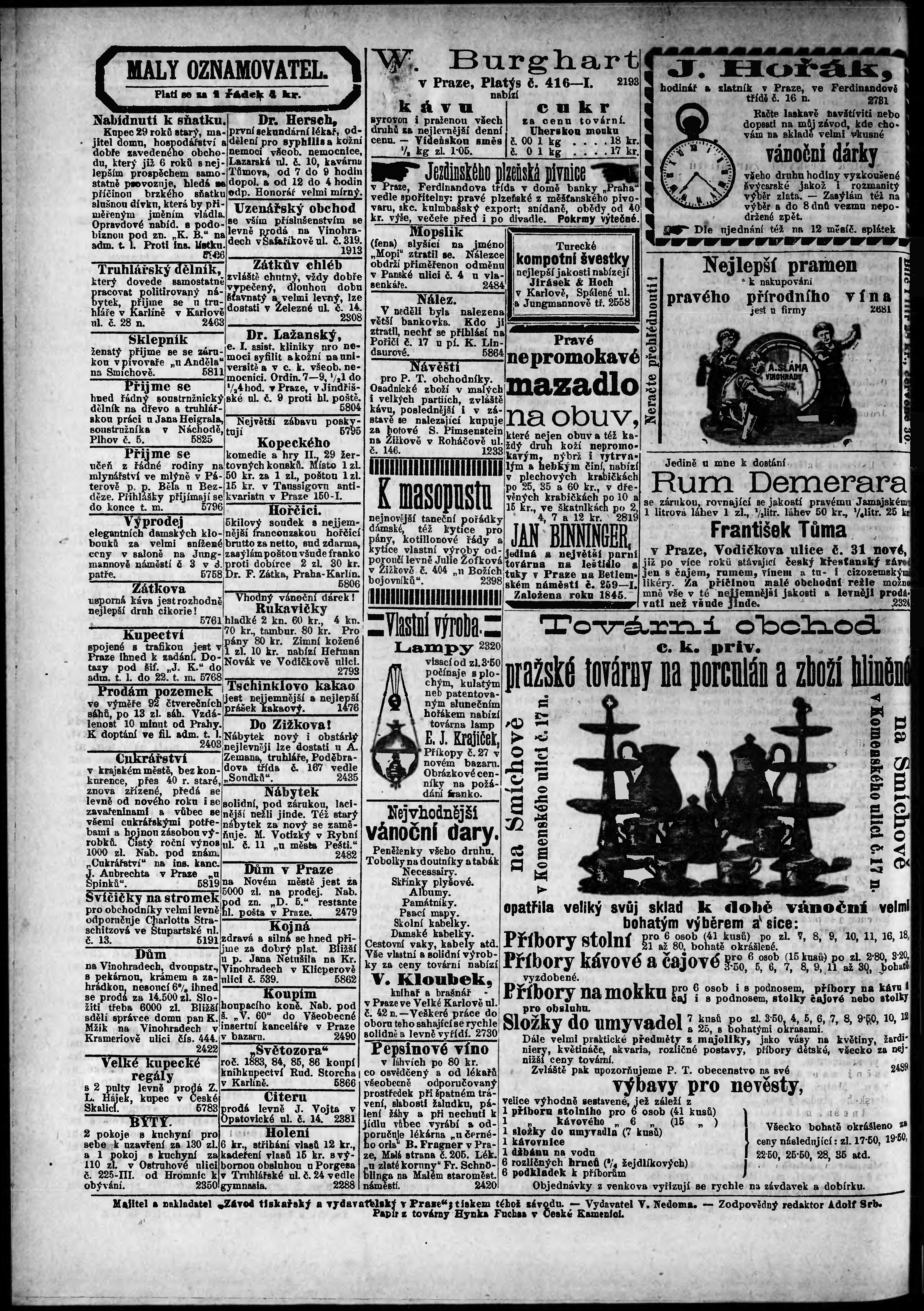 * Datum vydání výtisku: 19.12.1887 Číslo výtisku: 349 Poznámky k výtisku: ranní vydání;