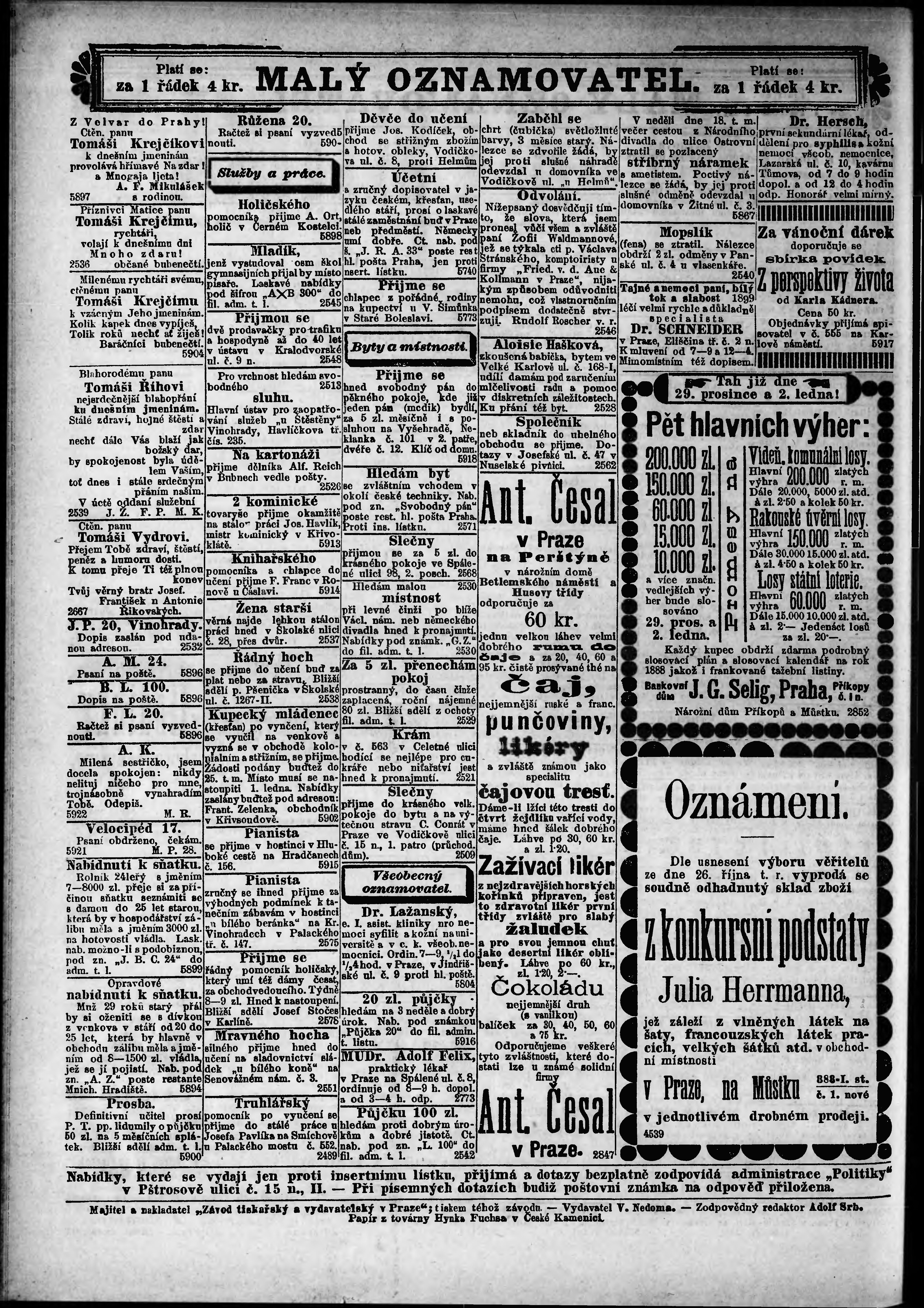 * Datum vydání výtisku: 21.12.1887 Číslo výtisku: 351 Poznámky k výtisku: ranní vydání;