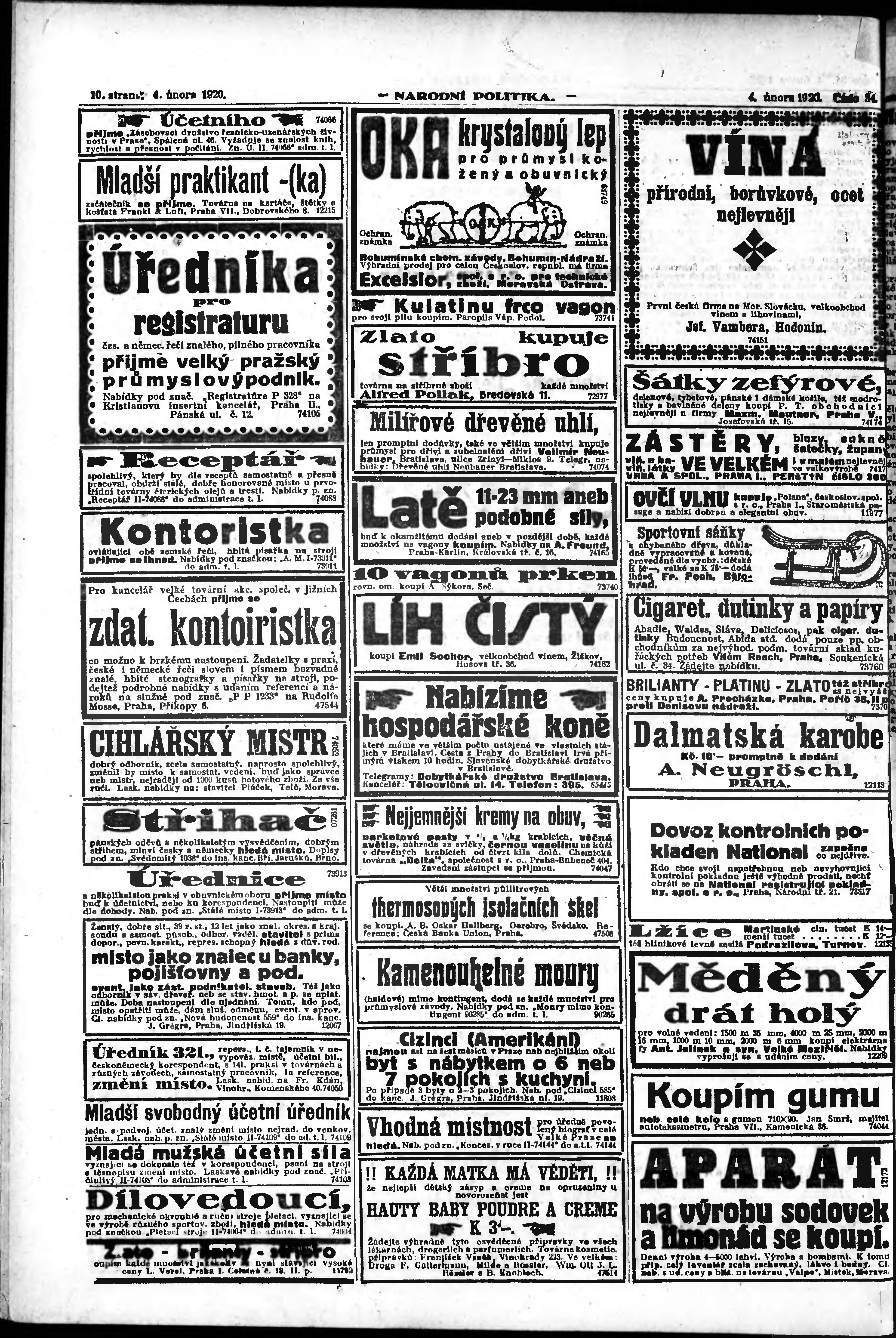 * Datum vydání výtisku: 4.2.1920 Číslo výtisku: 34 Poznámky k výtisku: ranní vydání; vydání pro Prahu;