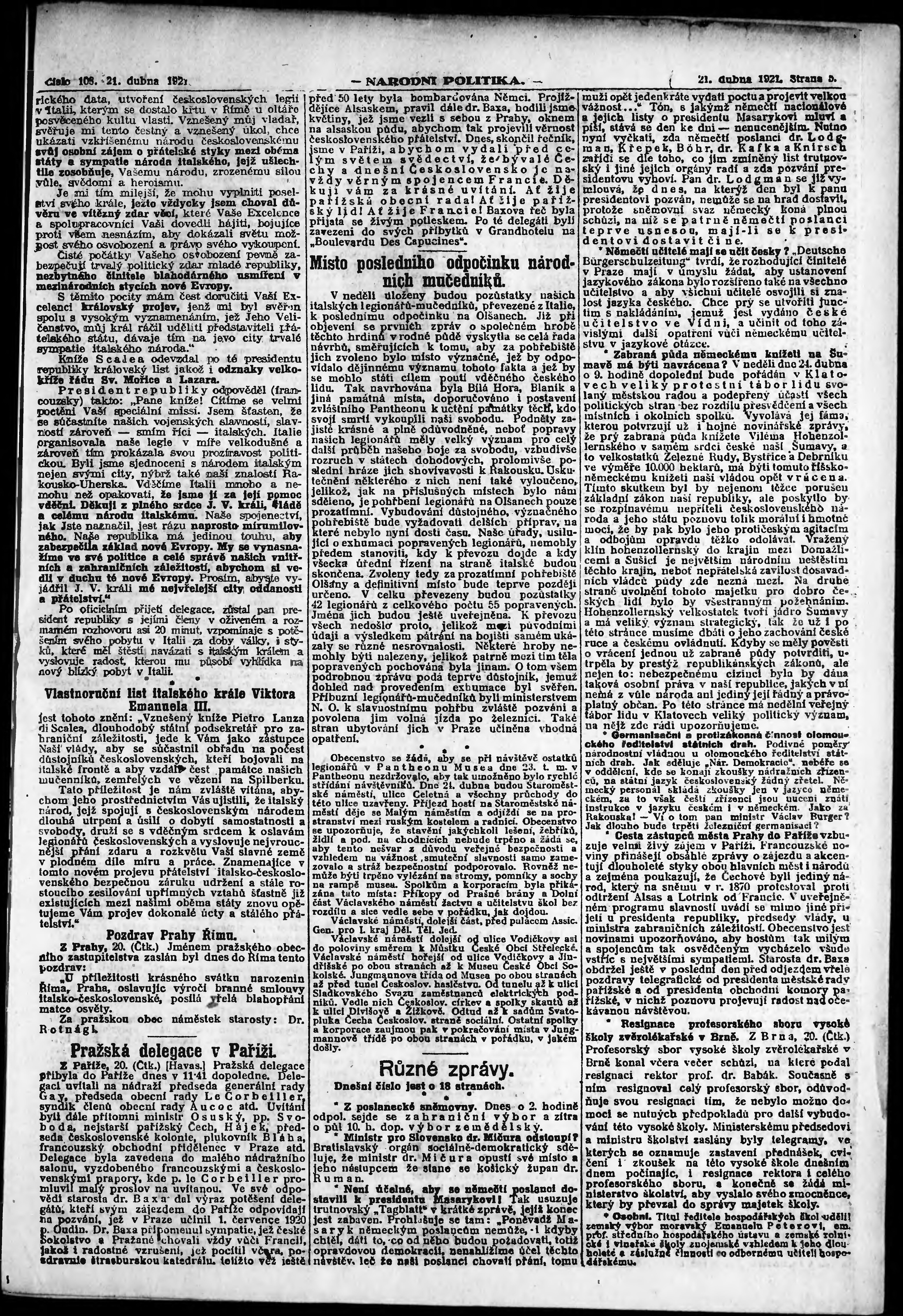 ranní vydání; vydání pro Prahu;