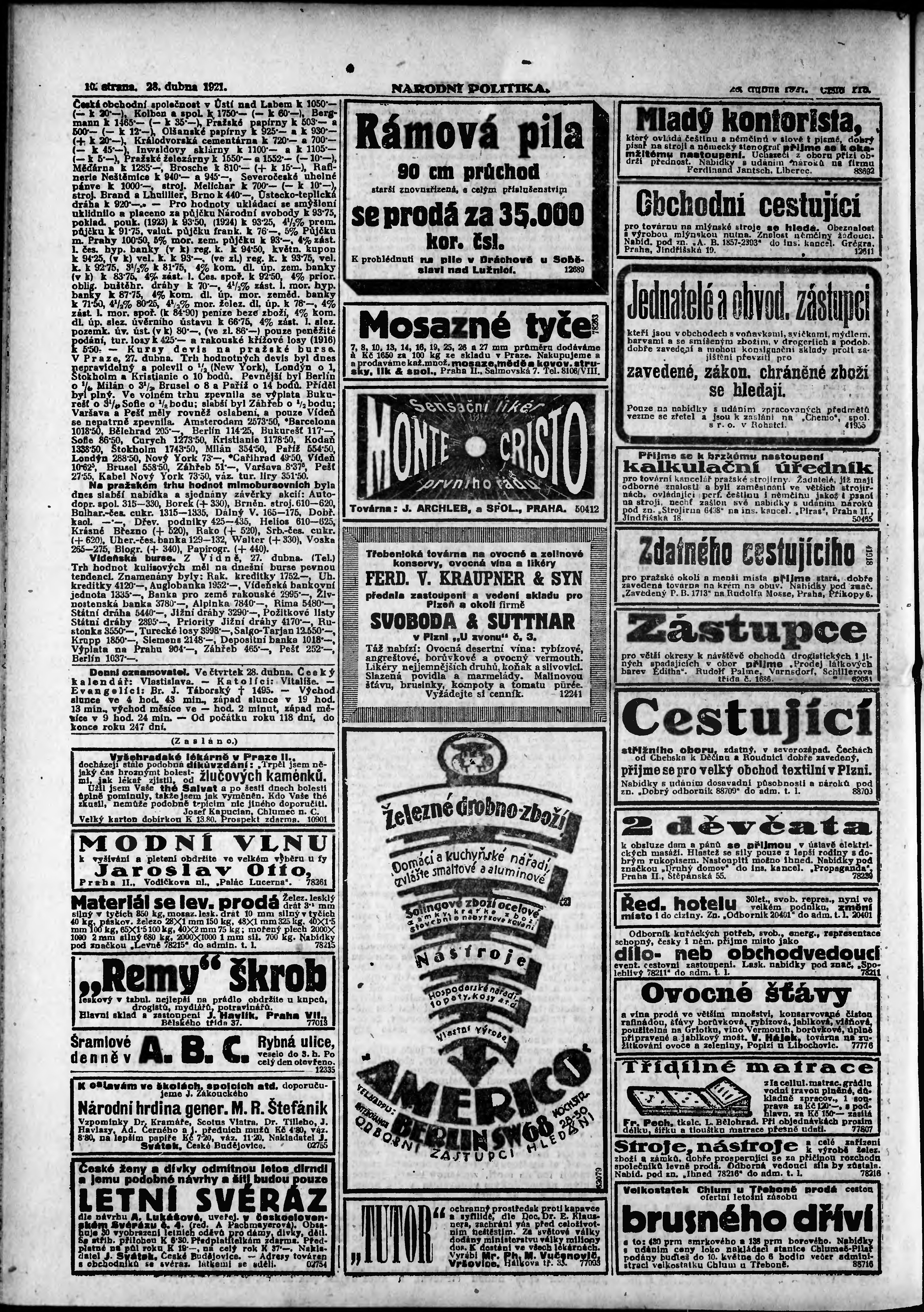 * Datum vydání výtisku: 28.4.1921 Číslo výtisku: 115 Poznámky k výtisku: ranní vydání; vydání pro Prahu;