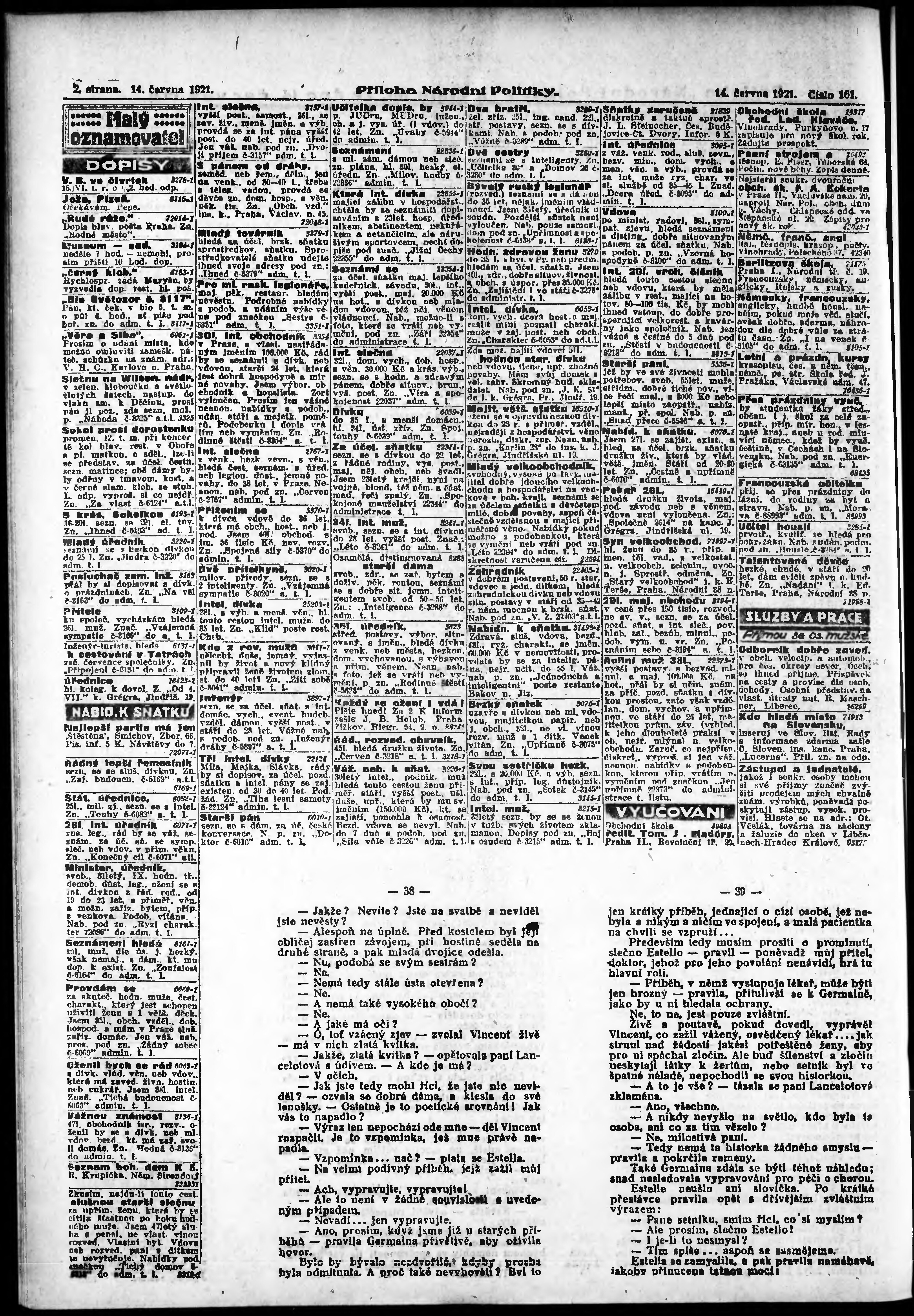 * Datum vydání výtisku: 14.6.1921 Číslo výtisku: 161 Typ výtisku: příloha
